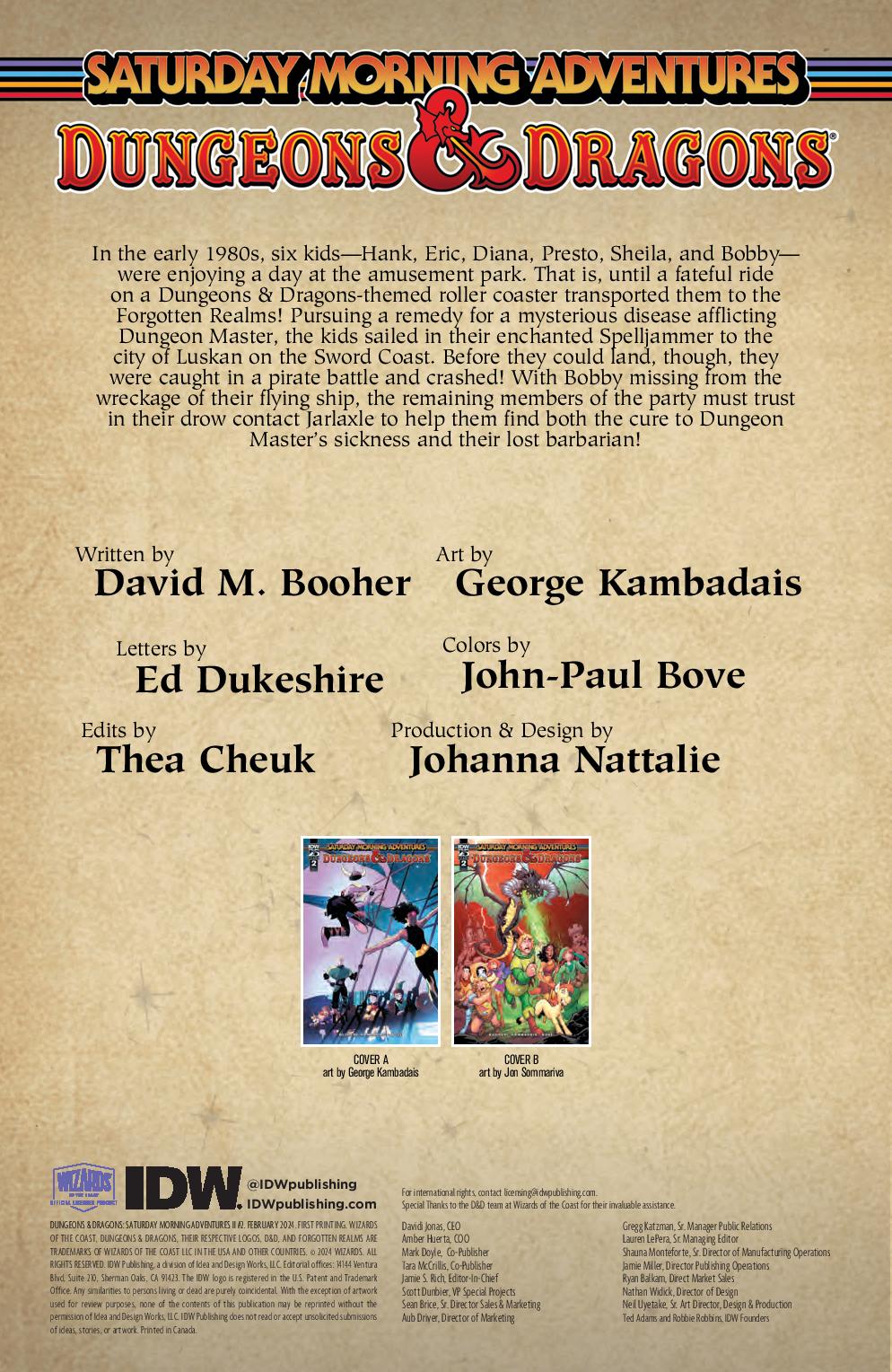 In 1983, six unsuspecting kids boarded a magical roller coaster and were transported to the Forgotten Realms…much to the awe and wonder of millions of children every Saturday morning! In celebration of its 40th anniversary, IDW Publishing will bring back the heroes of this cartoon classic in March with the new four-issue comic book miniseries, Dungeons & Dragons: Saturday Morning Adventures, a thrilling “lost episode” charting new territory in the world of D&D by writers David M. Booher, Sam Maggs, and artist George Kambadais!