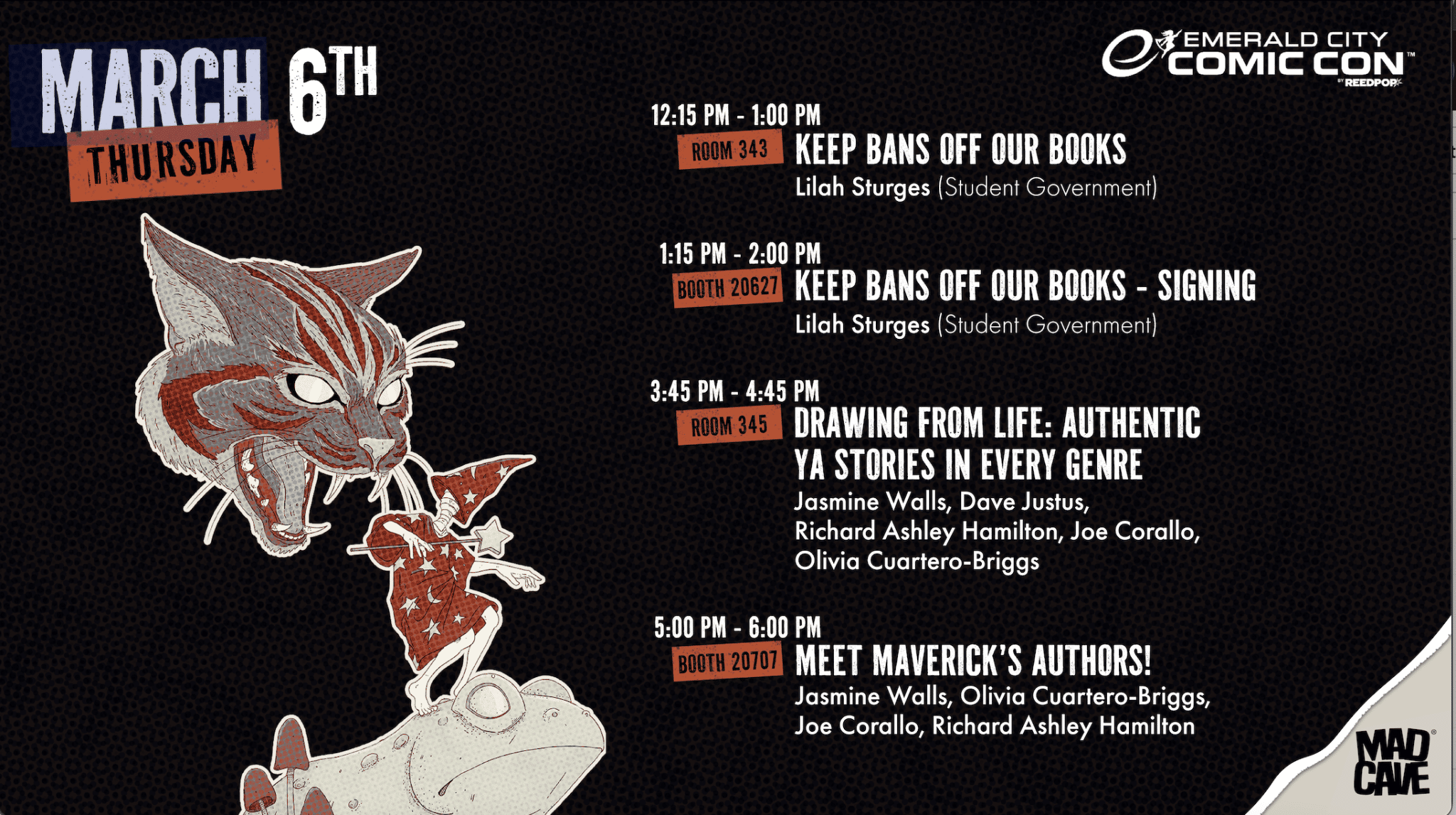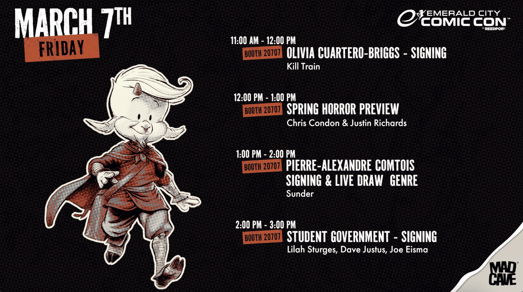 Dark Horse has announced its signing and panel schedule for Emerald City Comic Con 2026. All creators signing at the Dark Horse booth offer their autograph for FREE. During signings, a FREE card or poster print will be provided (while supplies last). Select books, comics, products, and convention exclusives can be also purchased at our booth, or you can bring your own items to be signed; however, we may limit the type or number of items to be signed as necessary.