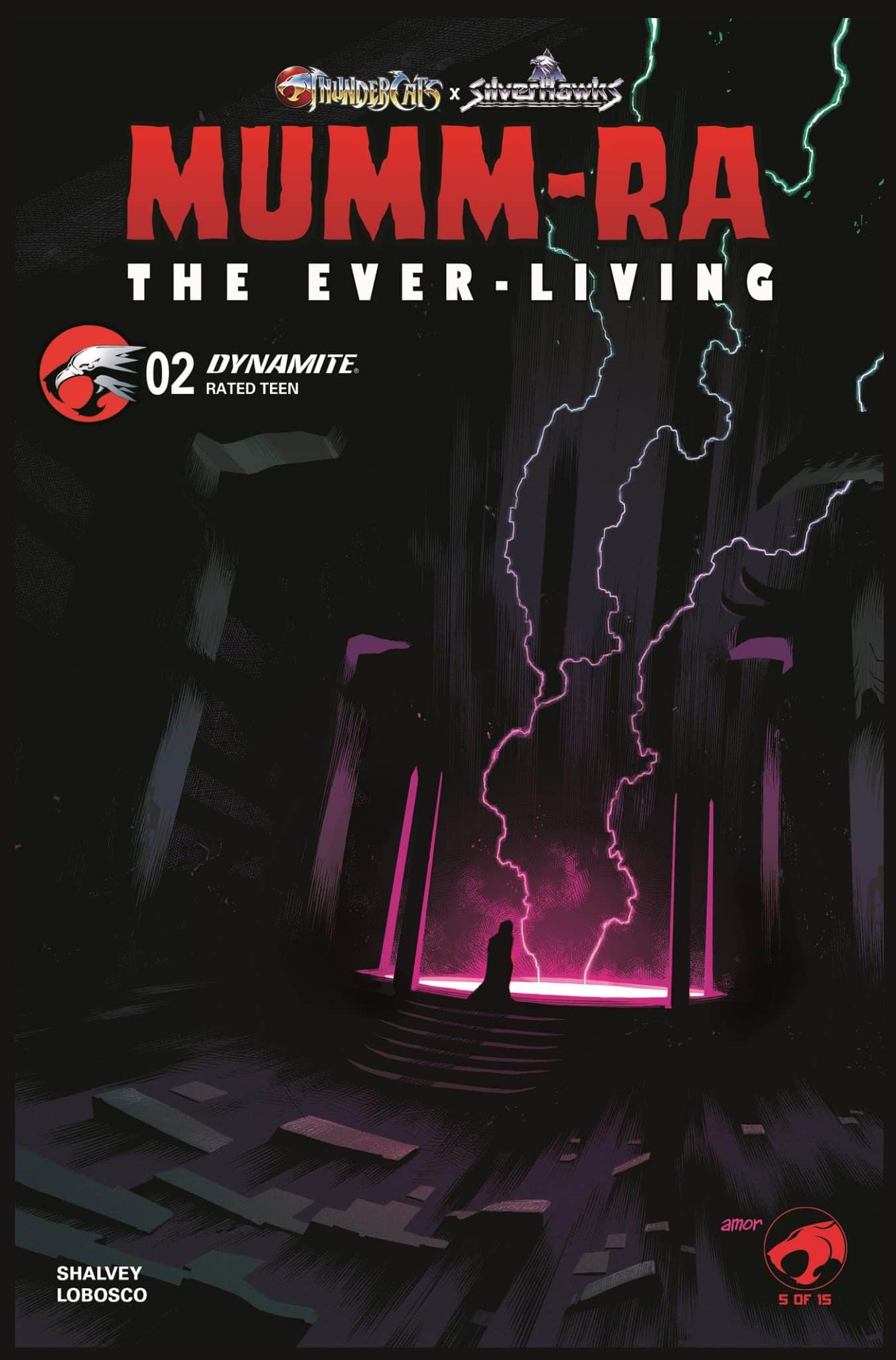 Written by Shalvey and illustrated by acclaimed ThunderCats Lost artist RAPHA LOBOSCO, Mumm-Ra the Ever-Living #1 takes a deep dive into one of pop culture’s greatest villains – enhanced by appropriately atmospheric covers from SHALVEY, DANNY EARLS, JOHN AMOR, and ERICA D’URSO, as well as a special piece of classic ANIMATION ART.