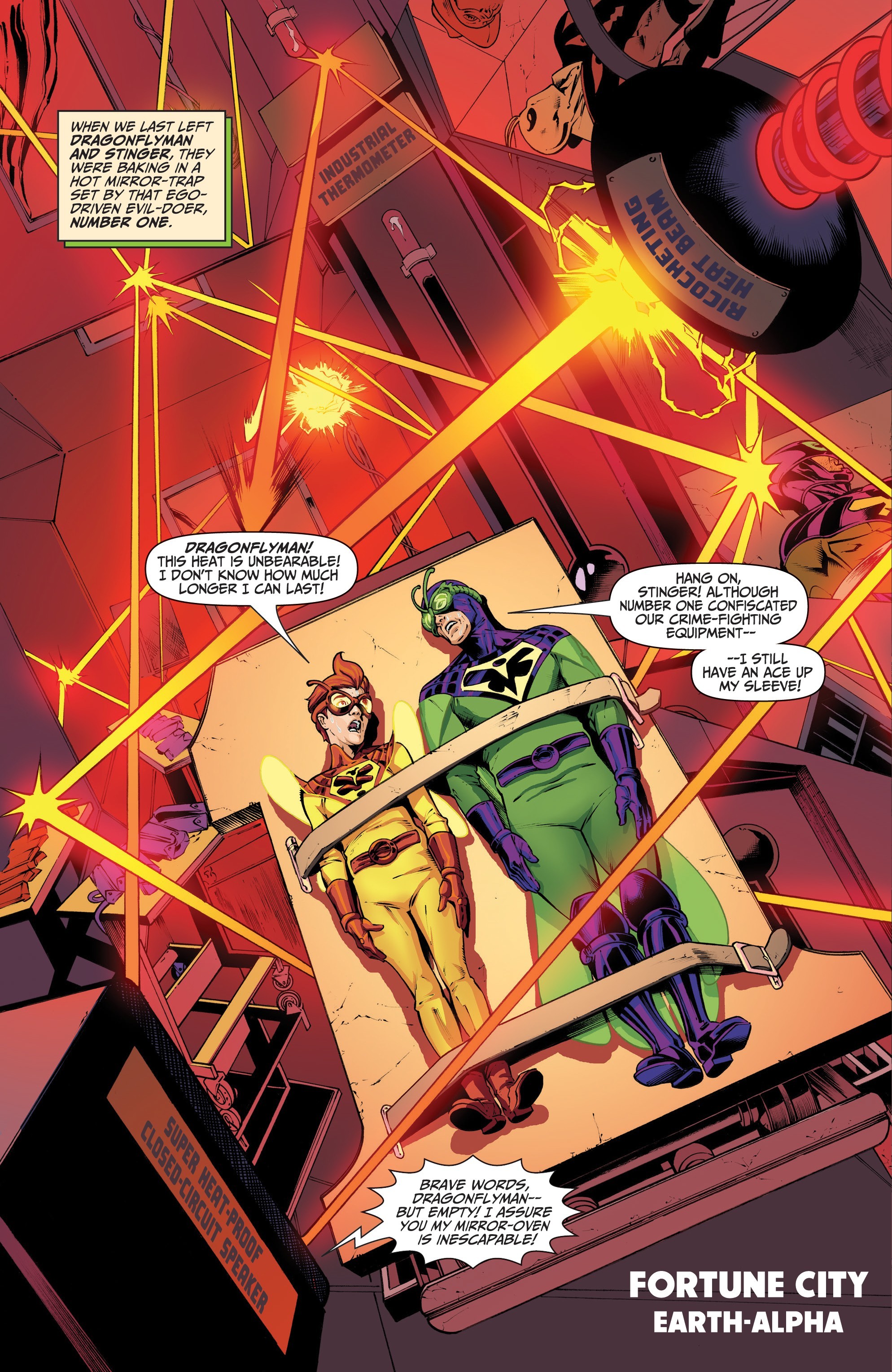 AHOY Comics launches with a biting superhero satire written by Tom Peyer (Captain Kid, Hourman), penciled by Jamal Igle (Black, Supergirl), inked by Juan Castro (Transformers),and colored by Andy Troy. On one world, Dragonflyman and his sidekick Stinger enjoy a life of adventure. On another Earth, the Dragonfly hunts criminal parasites like a lethal exterminator. But what happens when these two heroes change places?