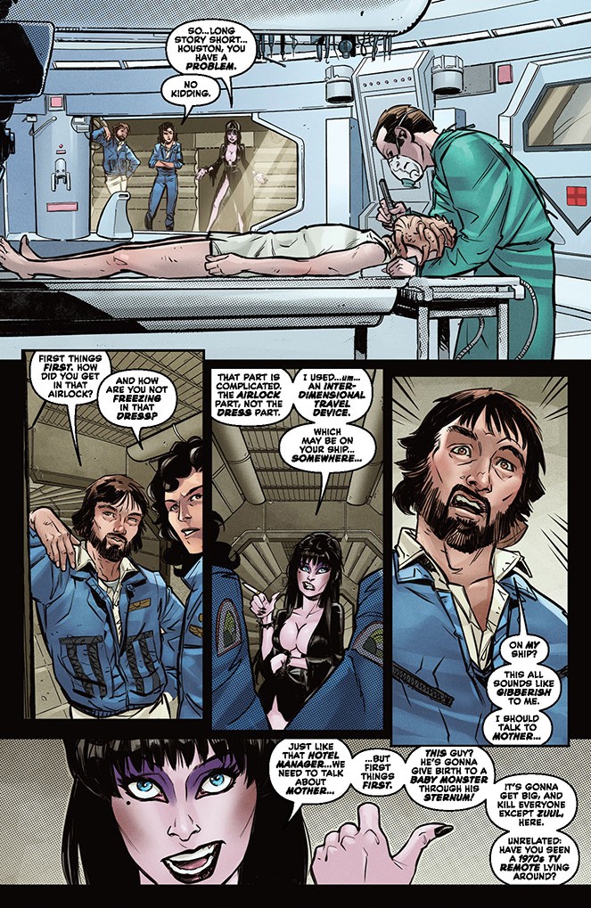 Now, in this new universe-spanning odyssey, Elvira is herself trapped in this Multiverse of Movies. She will careen from classic to classic, faced by killers, monsters, and more, as she tries to find her way home. Off the bat in the first issue, she finds herself stalked by a hotel clerk who’s positively psycho! Can she survive the wrath of a serial killer and get to the next part of her journey, or is it all just a Hitchcock-tease?