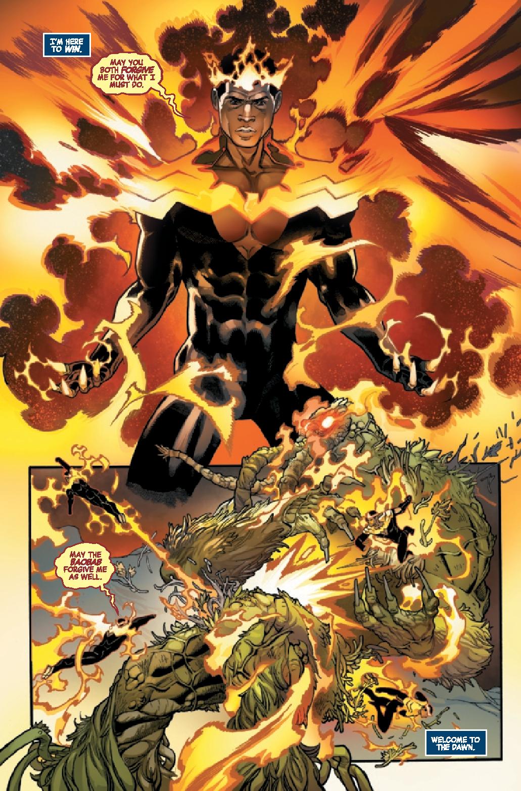 Writer Jason Aaron delivers a pseudo-follow up to Avengers vs. X-Men as the Phoenix looks for a new host, this time focusing mostly on non-mutants. The battle between characters to prove who’s mightiest is something we’ve seen over and over again and this issue provides nothing new as far as that. In fact, it riffs on the Marvel Cinematic Universe in a groan-inducing moment involving Captain America. Uninspired. Not exciting. Downright boring. These are the words I’d describe a moment that has global implications.