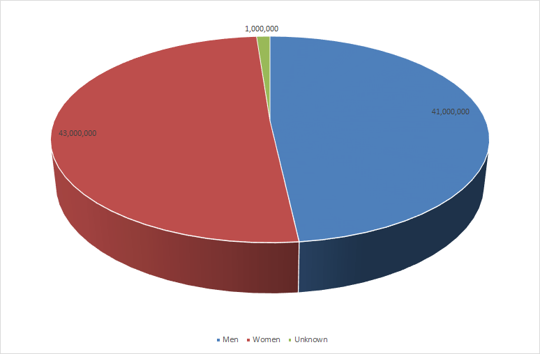 Interestingly, men account for the majority of fans. They account for 51.0% of the population compared to 50% of women. That’s a flip of the statistics in the United States where women are the majority. When looking at the data broken down by ages, women are a slight majority with about 2 million more individuals. So, it’s best to probably think of this fandom as pretty split between men and women.