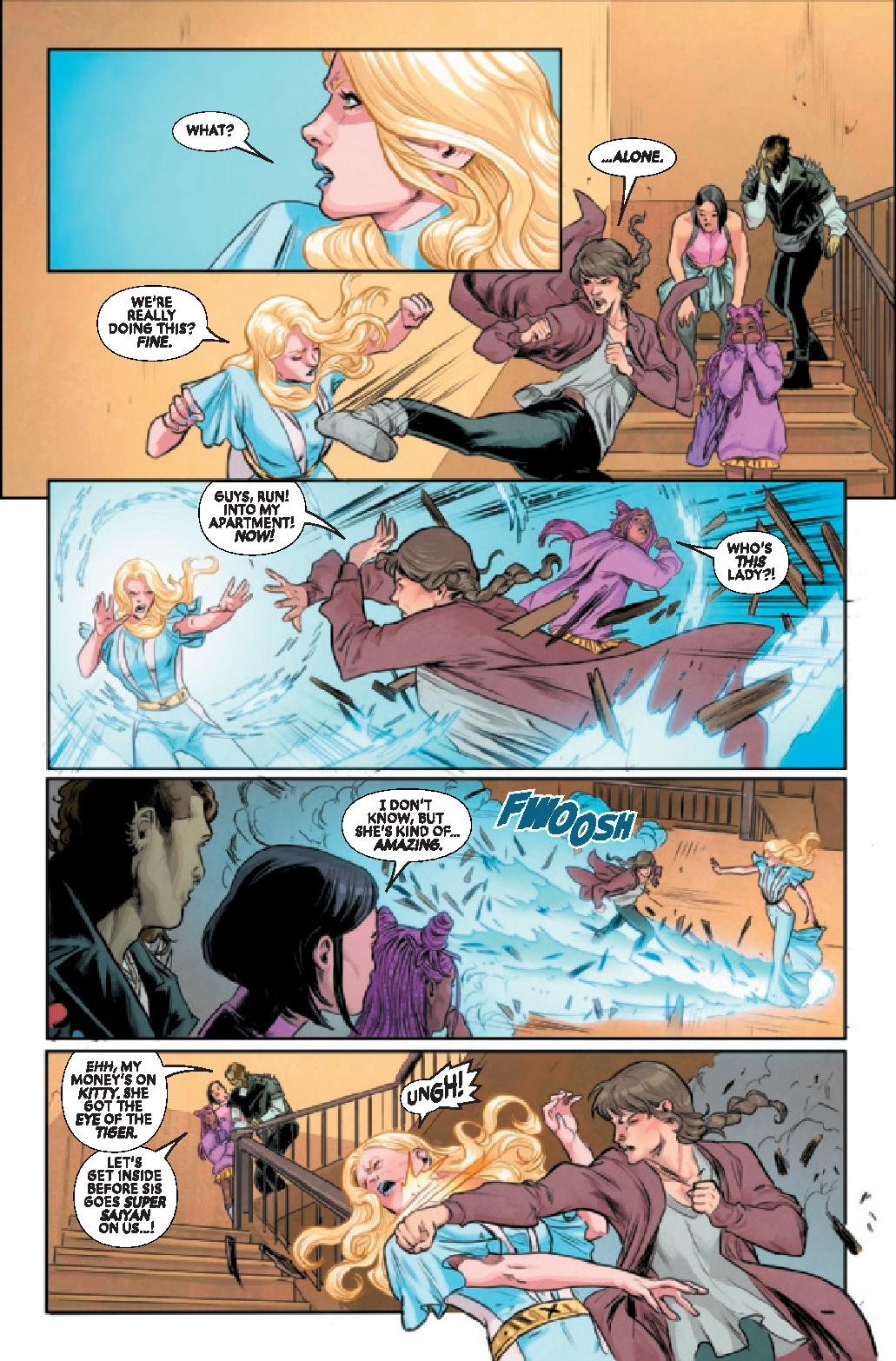 Kitty Pryde’s determination to stay doggedly away from all things X-Men related becomes more strained by the day as EMMA FROST once again sticks her nose into things. Meanwhile, our new team is finding their rhythm. AXO, MELEE and BRONZE have officially entered the fray!