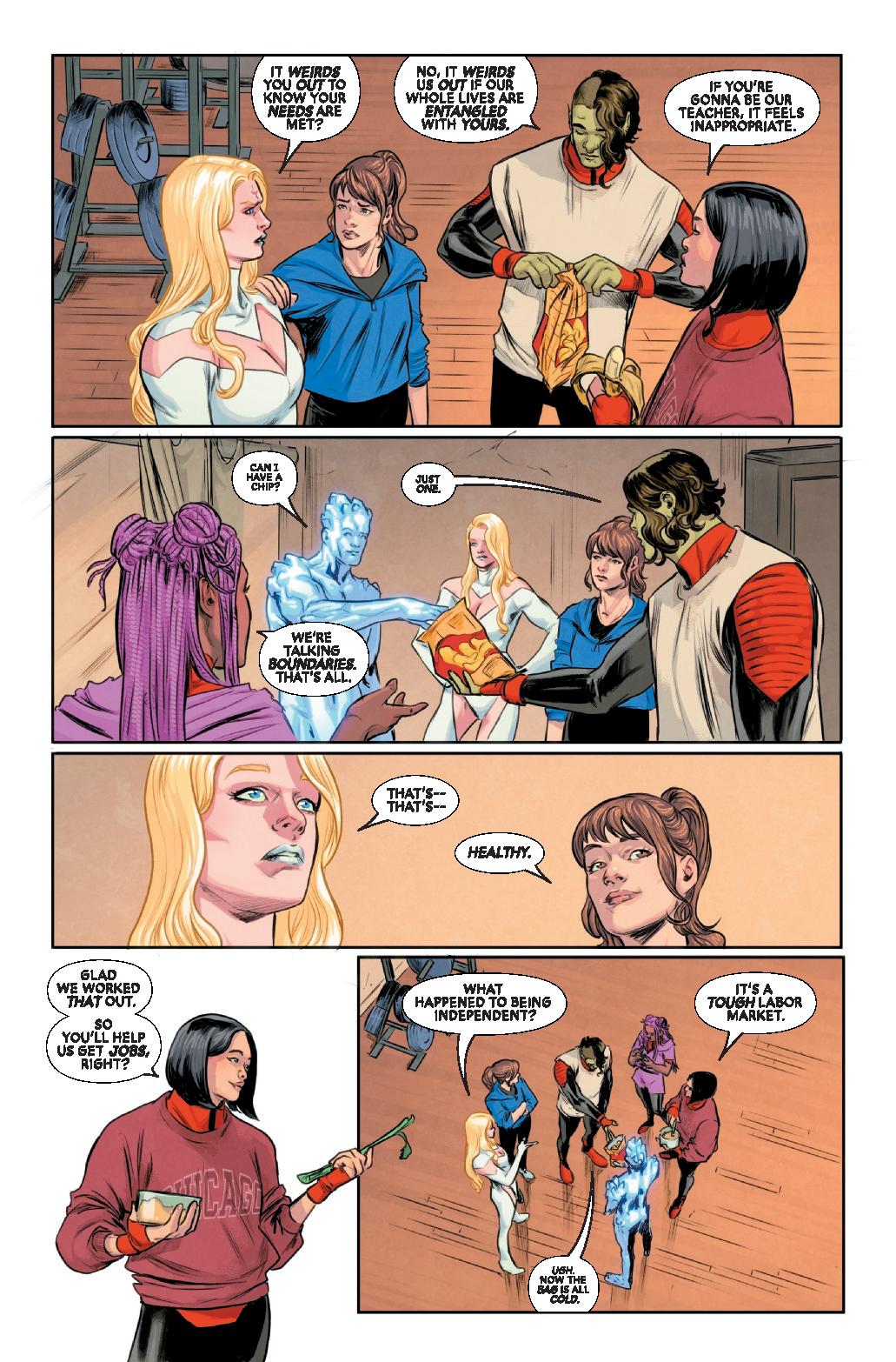Melee, Axo and Bronze still feel like newbies, but no X-Man gets to choose the timing of their own fates. Ready or not, they face the fight of a lifetime, leaving Emma forced to make the ultimate sacrifice to save her students.