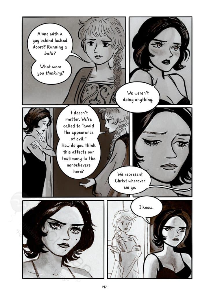 SS: This is such a good question, and it’s one of the things I wanted to “show not tell” in this book. It’s not only intended for people who grew up in church, it’s also for people who grew up outside of it and can’t quite understand the stakes, dynamics, or rationale of the people inside of it. For a lot of Evangelicals, obedience and the authority of scripture is paramount. (To be clear, we’re talking about their specific interpretation of the Bible.) Anyone who does not share their same beliefs is “lost,” ungodly, and in need of saving.