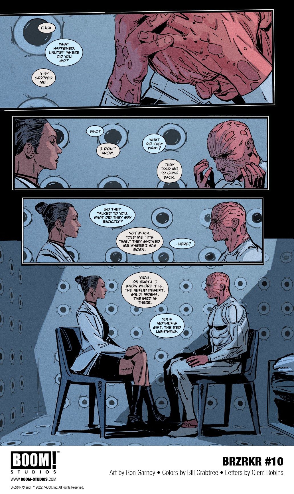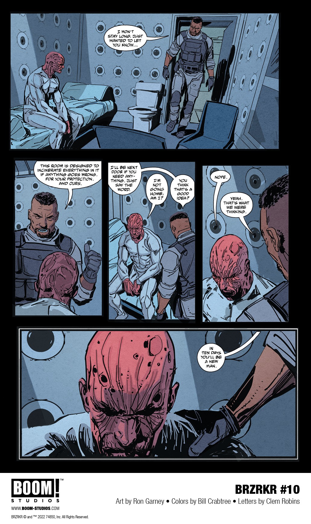BOOM! Studios has revealed a first look at the penultimate issue of the record-breaking hit comic book series BRZRKR by the iconic Keanu Reeves and NYT bestselling co-writer Matt Kindt, acclaimed artist Ron Garney, colorist Bill Crabtree, and letterer Clem Robins. Continuing in BRZRKR #11, discover the unfolding final chapter of the epic story that’s sold over a million copies, this December 21st!