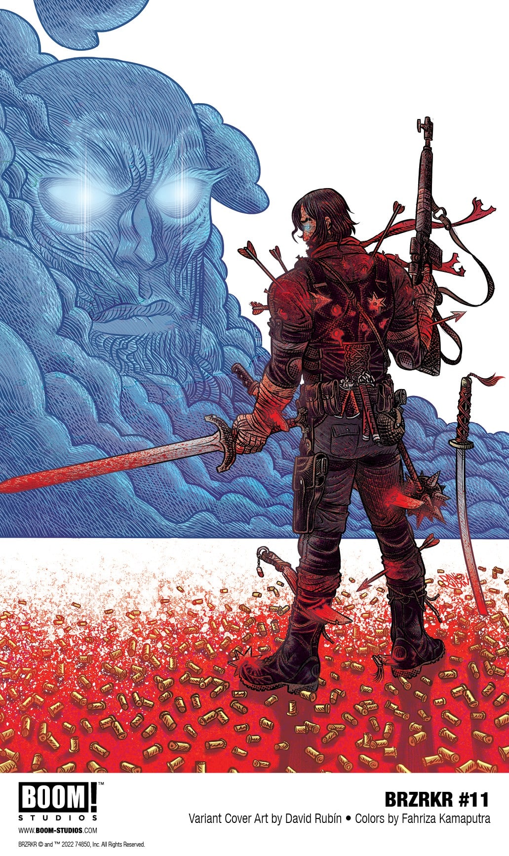 BRZRKR #11 features main and variant cover art by series artist Garney with Crabtree and variant covers by highly acclaimed artists David Rubín with Fahriza Kamaputra, and Raúl Allén.