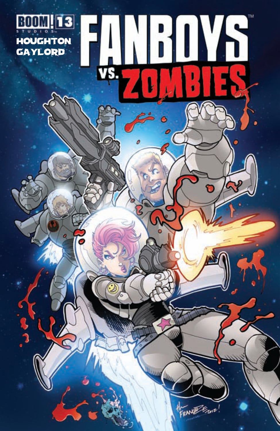 PRG: When my husband Jerry Gaylord got the penciller job for Fanboys Vs Zombies, I volunteered to be his inker because we love to work together. When we went to San Diego Comic Con two years ago, I got to meet the BOOM! family and they were just the coolest people I’ve ever met. Honestly. There’s a bit of an expectation of editors being somewhat aloof and almost pretentious when you meet them for the first time, at least in my experience anyway. But all the editors at BOOM! were extremely friendly and down to earth. After getting to do an exclusive cover for Adventure Time with Fionna and Cake #1, I got to talk with Shannon (editor) and Whitney (asst. editor) and shoot them some more ideas which got me more work with them.