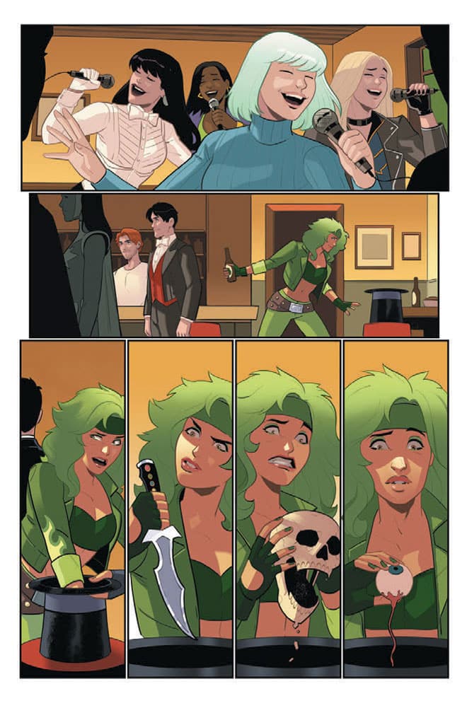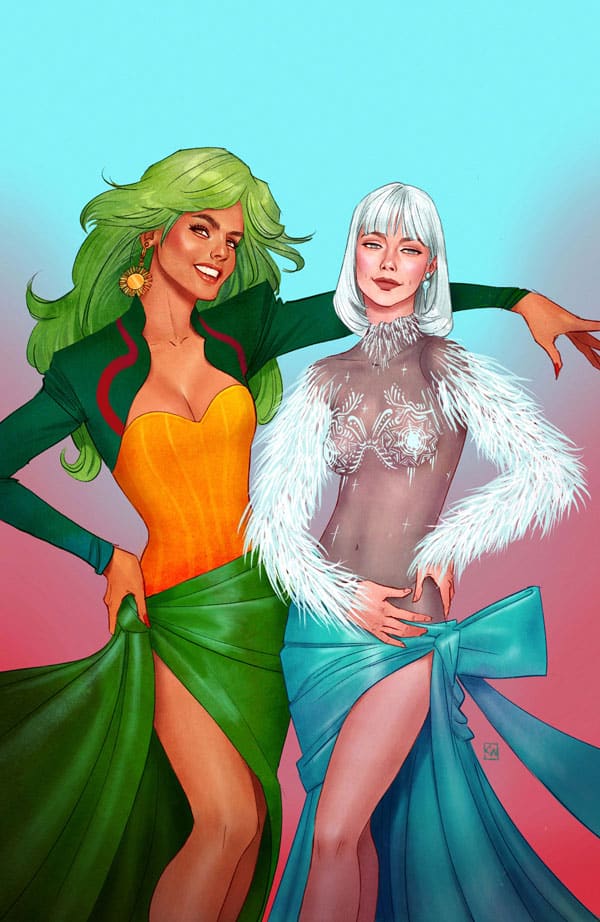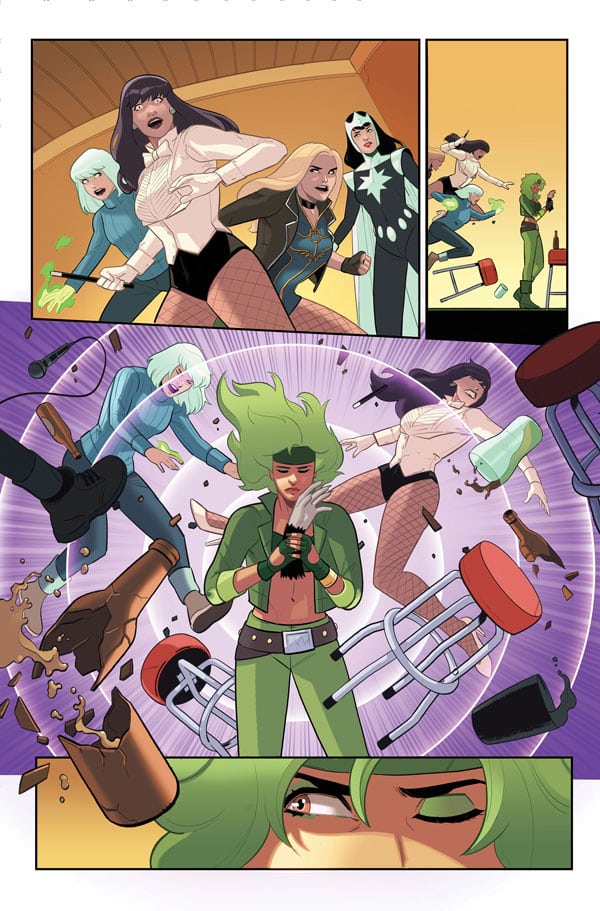 With their powers switched and no solution in sight, Fire and Ice tuck tail and regroup in Smallville, where they realize their predicament makes them something worse than has-been heroes: menaces to the local community they’ve come to love. But Fire’s always got a plan, no matter how shortsighted! And when she goes digging around in Zatanna’s bag of tricks for a quick fix in the middle of karaoke night…what could possibly go wrong? Aside from, y’know, everything. Again.
