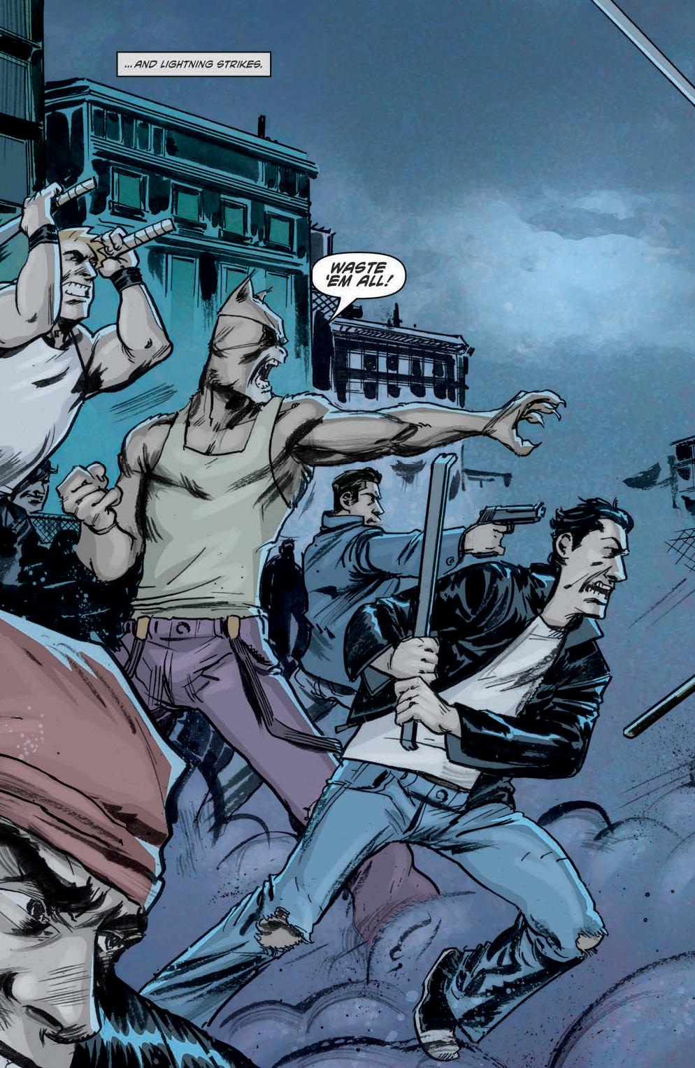 IDW’s ANGEL #39 is the first step in this closer co-existence. The issue introduces new series writers David Tischman ( ANGEL: BARBARY COAST ) and his TRUE BLOOD co-writer, Mariah Huehner, who kick off IDW’s final six-part storyline entitled “The Wolf, The Ram & The Heart,” which should give fans a good indication of just who the final tale’s “big bad” will be. Longtime ANGEL readers know just how big and how bad Wolfram & Hart can be. Issue #39 is also an excellent jumping on point for new readers, as it begins a new storyline for Angel and his crew.