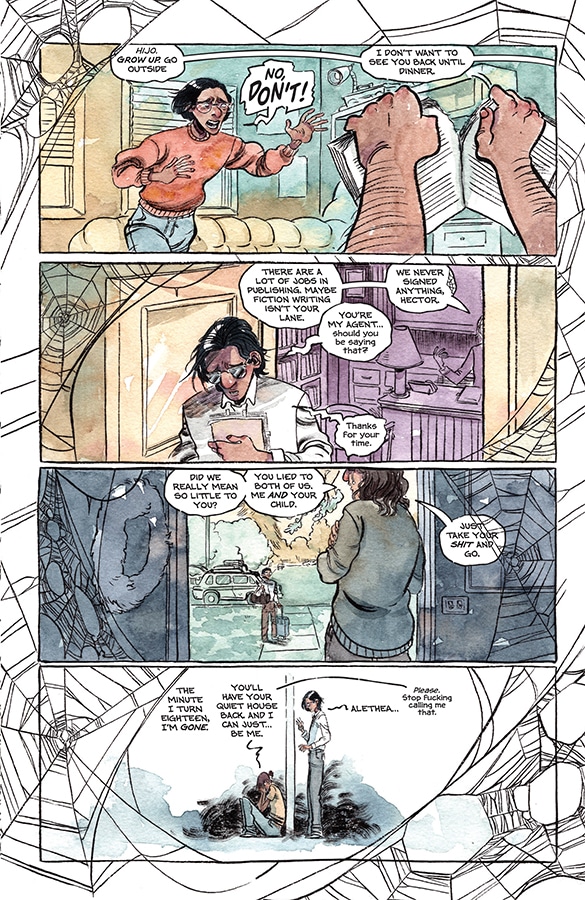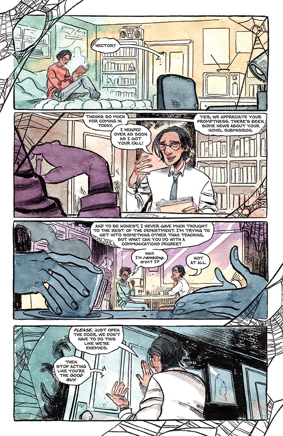 Hector finds himself trapped in a dangerous web of ink and magic, forced to confront sins of the past… and future. Al tries to escape some sinister new adversaries. Sheila has tea.