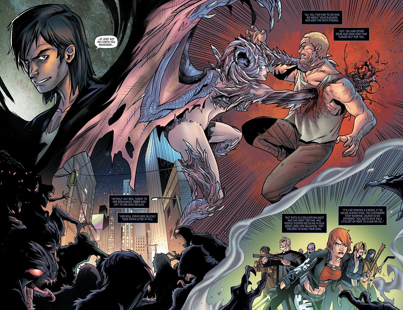 The Hands of God continues to rampage through Earth in this penultimate issue, leaving Dellec with little chance to save humanity, let alone his own life! Meanwhile, Andy is confronted with the reality of her father’s past, as her own personal battle puts her face-to-face with Heaven’s own fallen angels—looking for brutal vengeance!