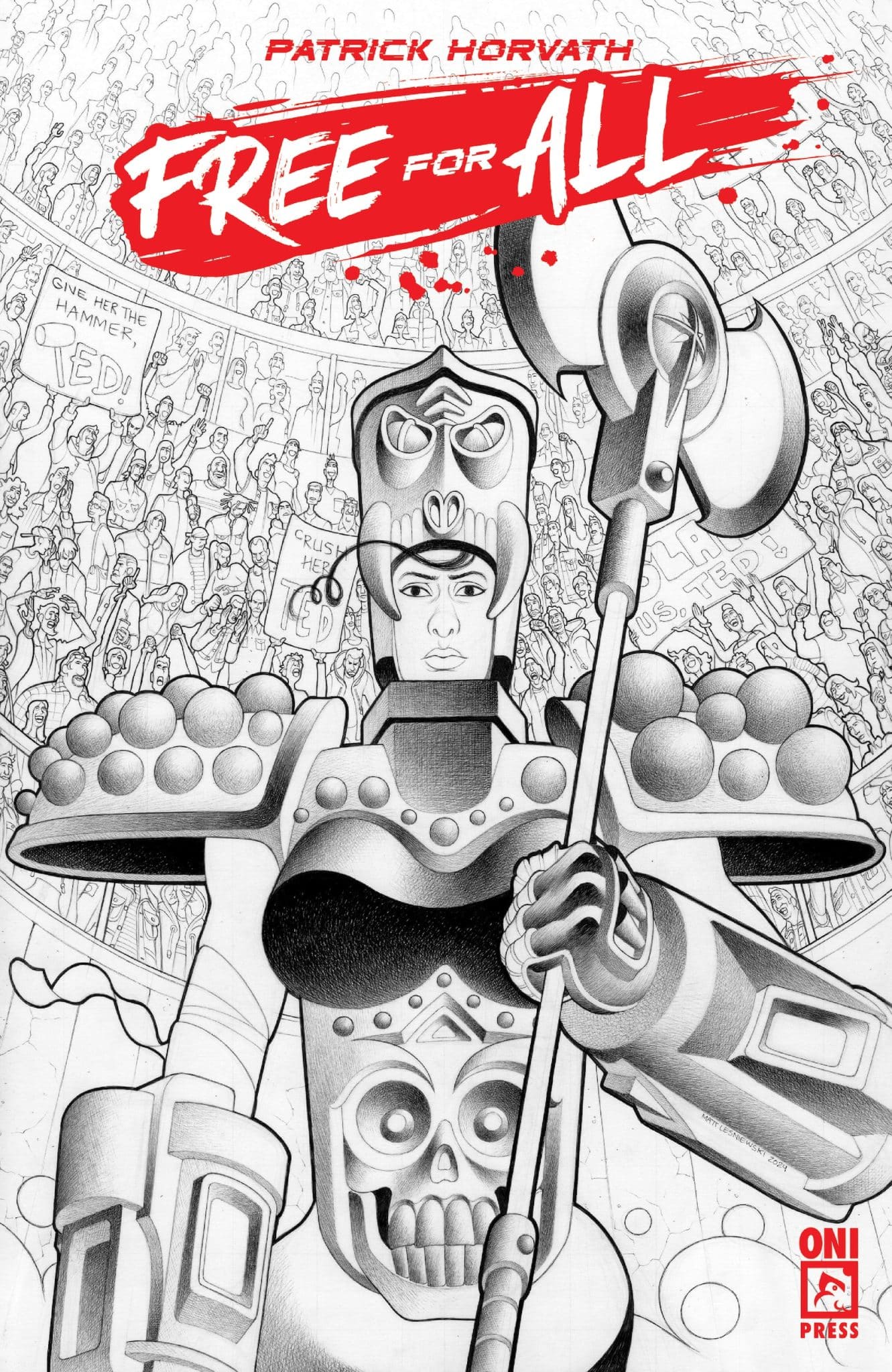 What if instead of sitting on their money like Smaug the Dragon, funneling it into documentaries about the wife of a rapist directed by a rapist, or using it to actively billionaires (and trillionaires, ugh) donated half their fortunes to the people. And if they refused, they fought each other to the death in a Roman gladiators, but slightly more high tech manner. This is the premise of the graphic novella Free for All by auteur cartoonist Patrick Horvath. The story has been released in a few different formats, but I would argue that the upcoming Oni Press edition is the definitive version featuring an interview with Horvath and some behind the scenes commentary on the book’s thrilling final pages. So, it’s a treat for process nerds as well as folks who want a cathartic, yet slightly unsettling shot of fight comic adrenaline.