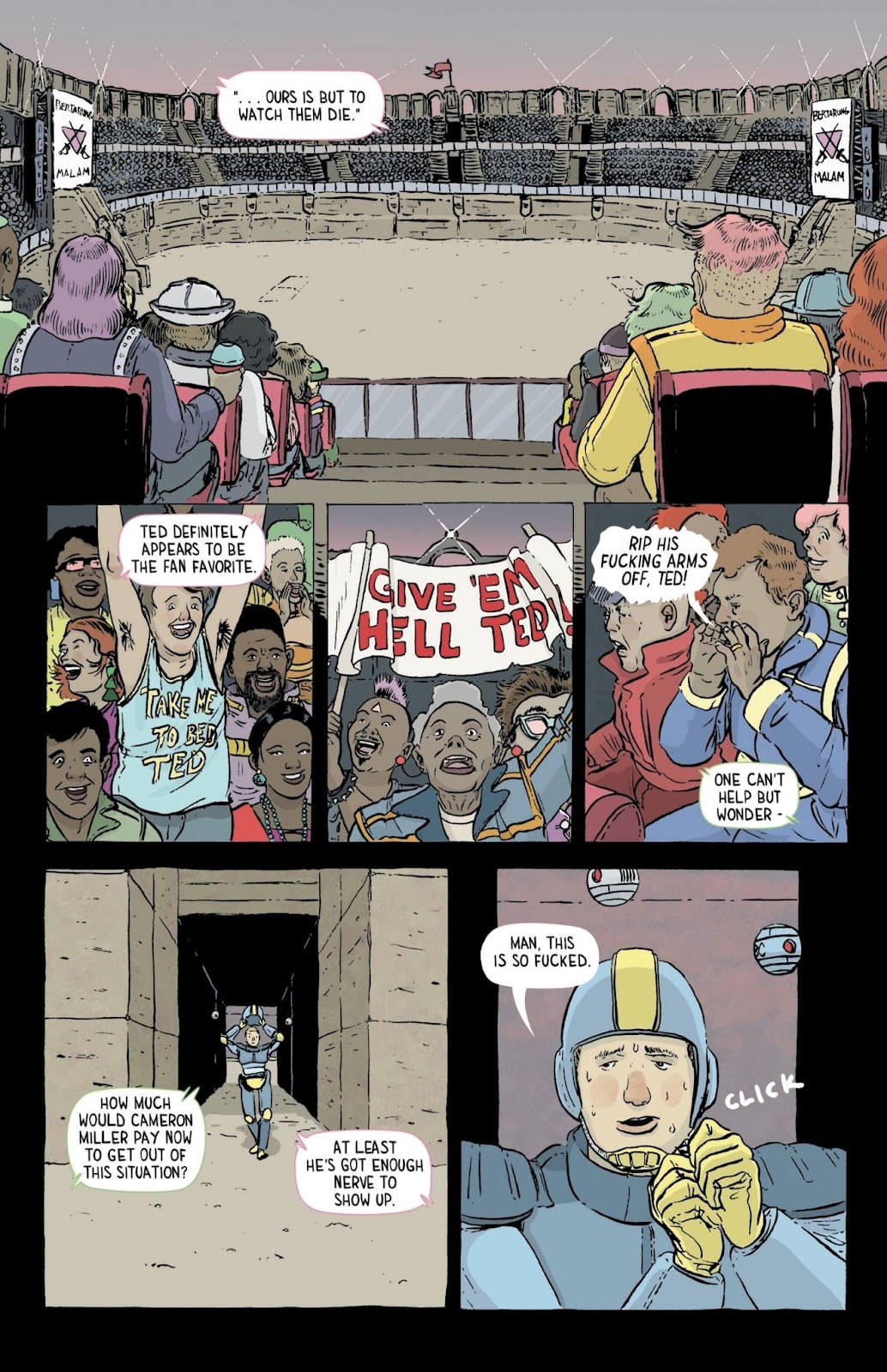 In the future, the World Finance League exists to benefit all, randomly choosing those from among the billionaires and trillionaires of the world and presenting them with a choice: either donate half of their assets to the common good — or defend them in ritual combat.