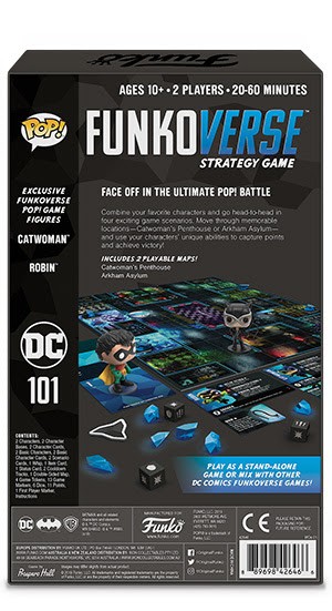 In DC 101 combine additional characters in 4 additional game scenarios in memorable locations like Arkham Asylum or Catwoman’s Penthouse with Catwoman™ and Robin™. Play as a stand-alone or mix with other DC Funkoverse games!