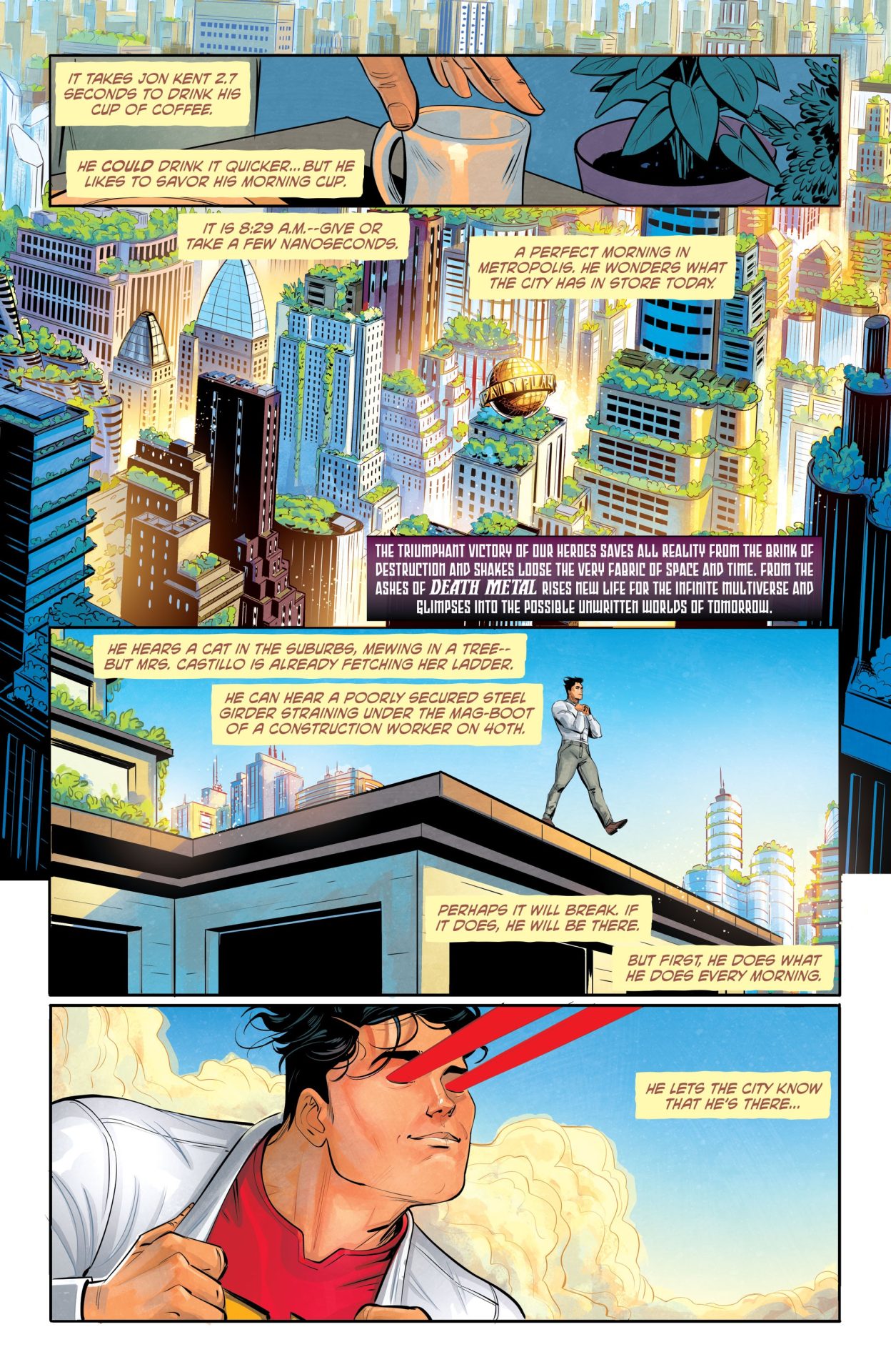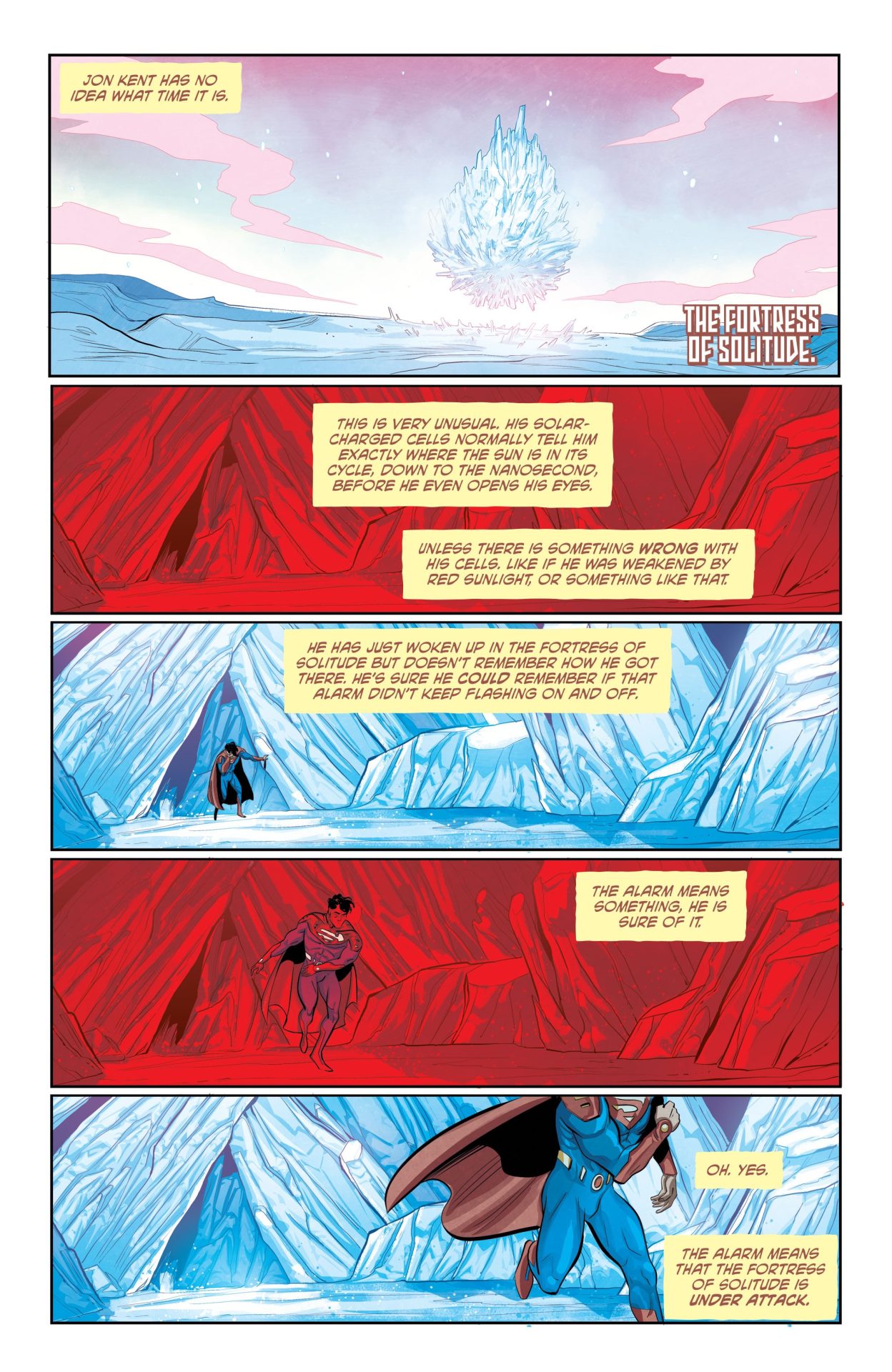 Speaking of punching, Future State: Superman/Wonder Woman #2 goes for more of a problem solving than a brawling angle in Yara and Jon’s battles against Solaris and Kuat. Because Solaris’ red sun negates Jon’s ability and makes him a formidable foe despite appearing in only a few stories, they have to use their smarts instead of brute force to defeat them. This is why Watters’ plotting is more Doctor Who and less, say, Geoff Johns’ Justice League as he introduces cool gadgets, knowledge of the future, and just plain grit for his heroes to save the day. He and Del Duca also deploy the power of multi-faceted characterization in crafting Yara and Jon’s plans, and the lack of extraneous guest stars in this issues means that we really get to know them better by the end of the story.