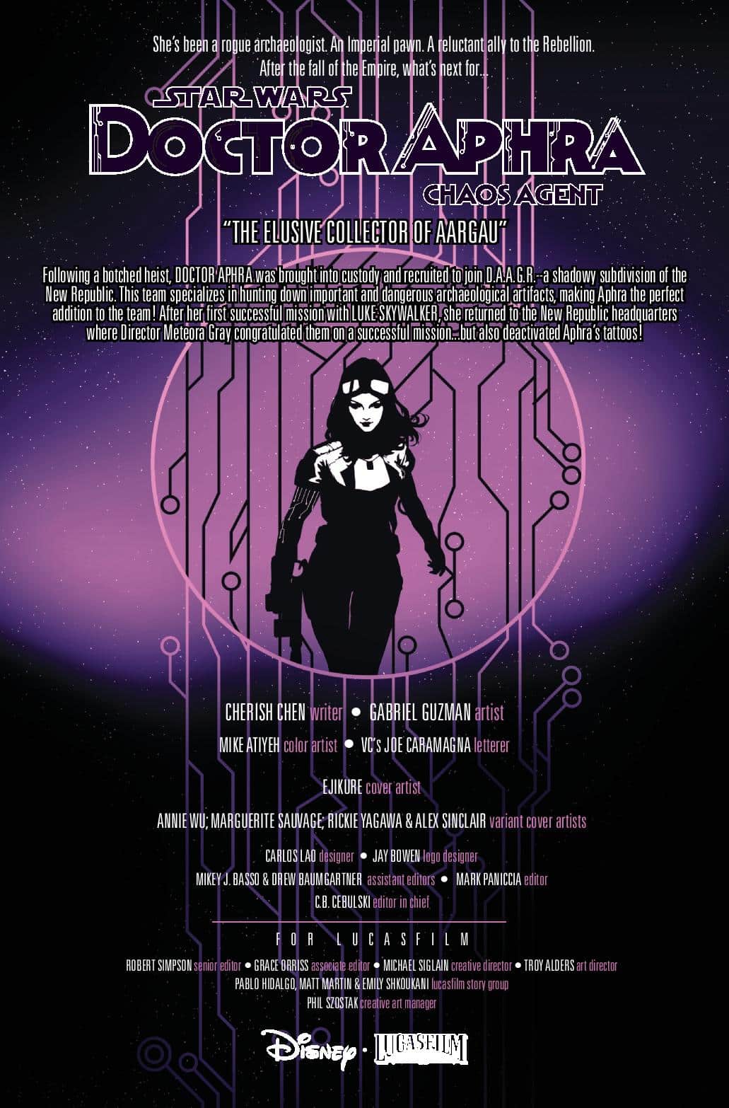 On the distant world of AARGAU, LUKE SKYWALKER and DOCTOR APHRA track down a valuable artifact. An unstable underworld collector has a different plan for them! Will the New Republic’s newest agent betray her JEDI friend for a chance at the prize?