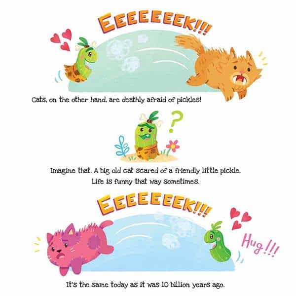 To what lengths will the pickles go to cultivate a furry friendship? Will our cats pay them any attention at all? Which cats will totally freak out? (Hint: All of them!) Find out in this hilarious book for young readers, featuring three wacky stories that will keep you coming back for more!
