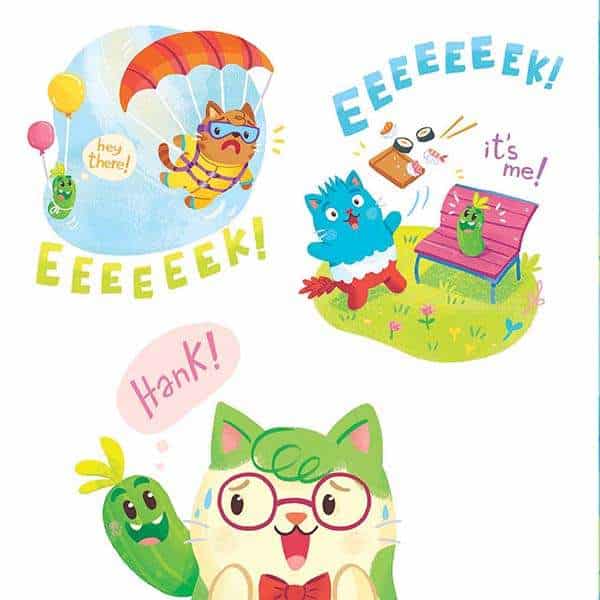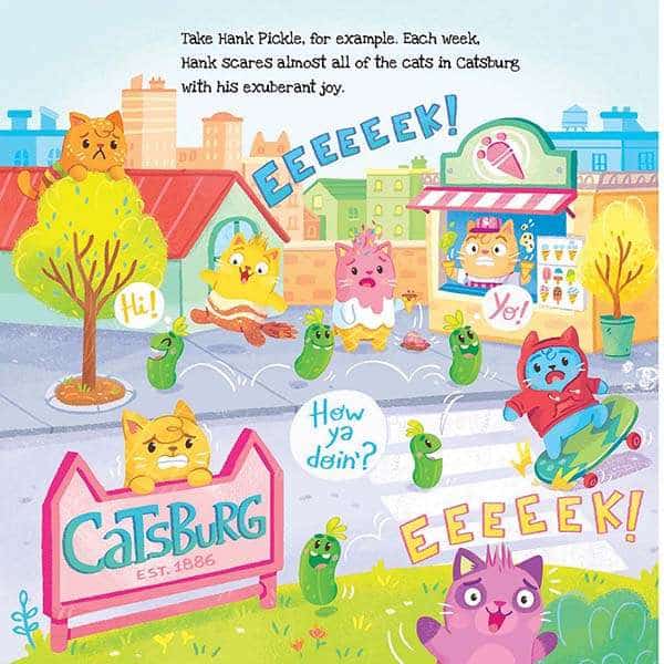 Catsburg Flowers, Pickle Showers is an endearing tale, centered on friendship and inclusivity, that promotes the core message that it’s silly to be afraid of something just because it’s a little different than you — a message that resonates with all of us, since we’ve all been a Pickle ourselves at some point!