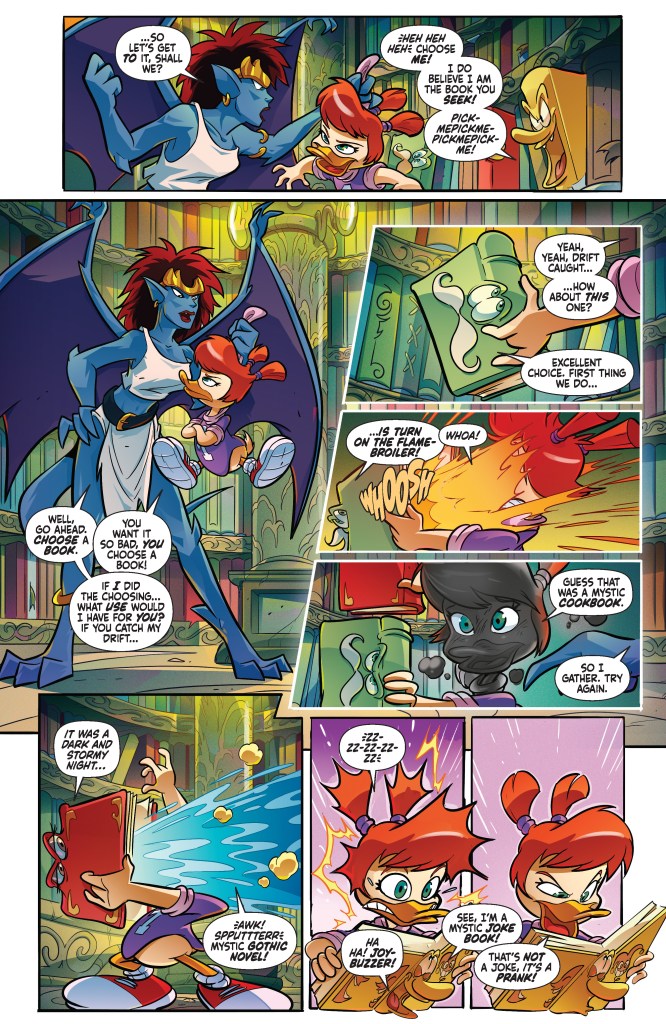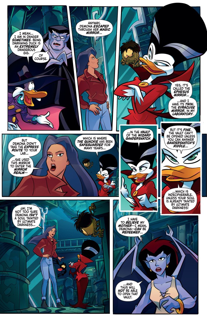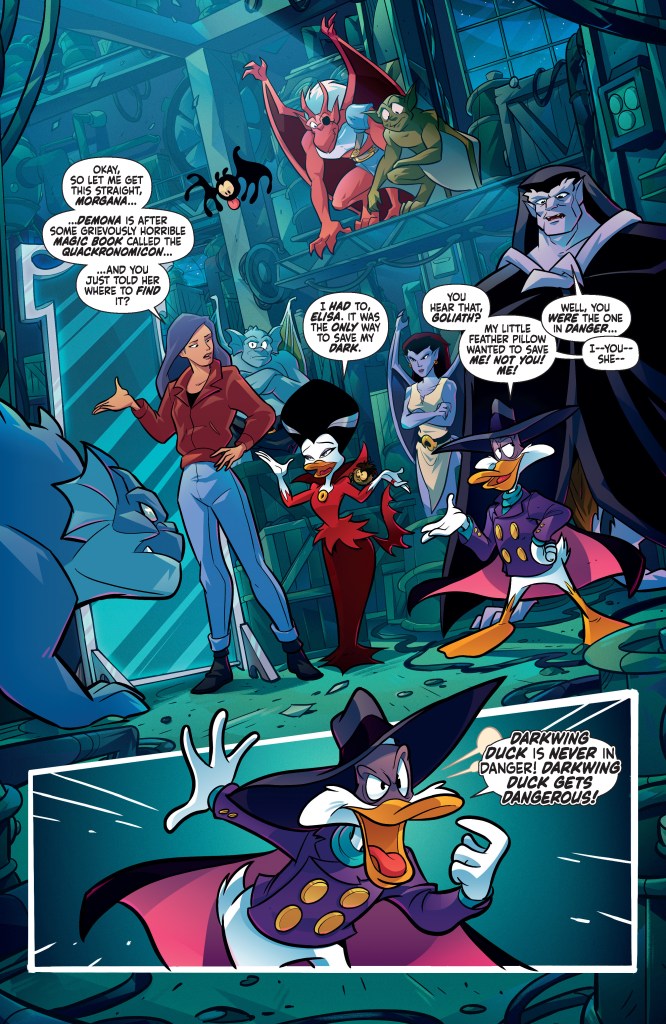 When the diabolical Demona uses a mysterious magic mirror to recruit Morgana Macawber to her cause of mass destruction, Darkwing Duck and Launchpad McQuack flap their wings — actually they board the Thunderquack — over to Manhattan. They’ll quickly cross paths with Goliath and Elisa. It might be time for a classic hero versus hero misunderstanding brawl, and so much more will follow!