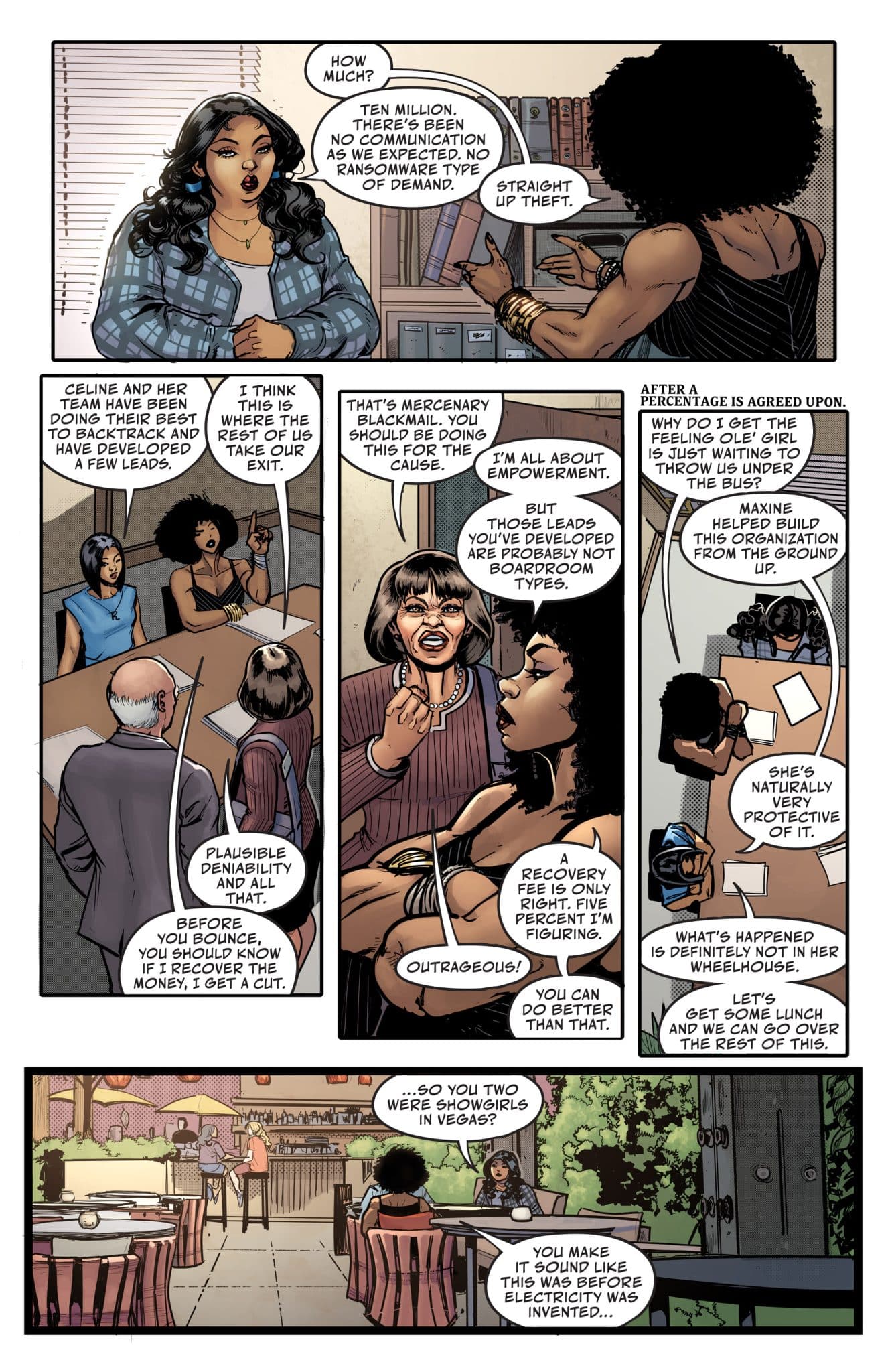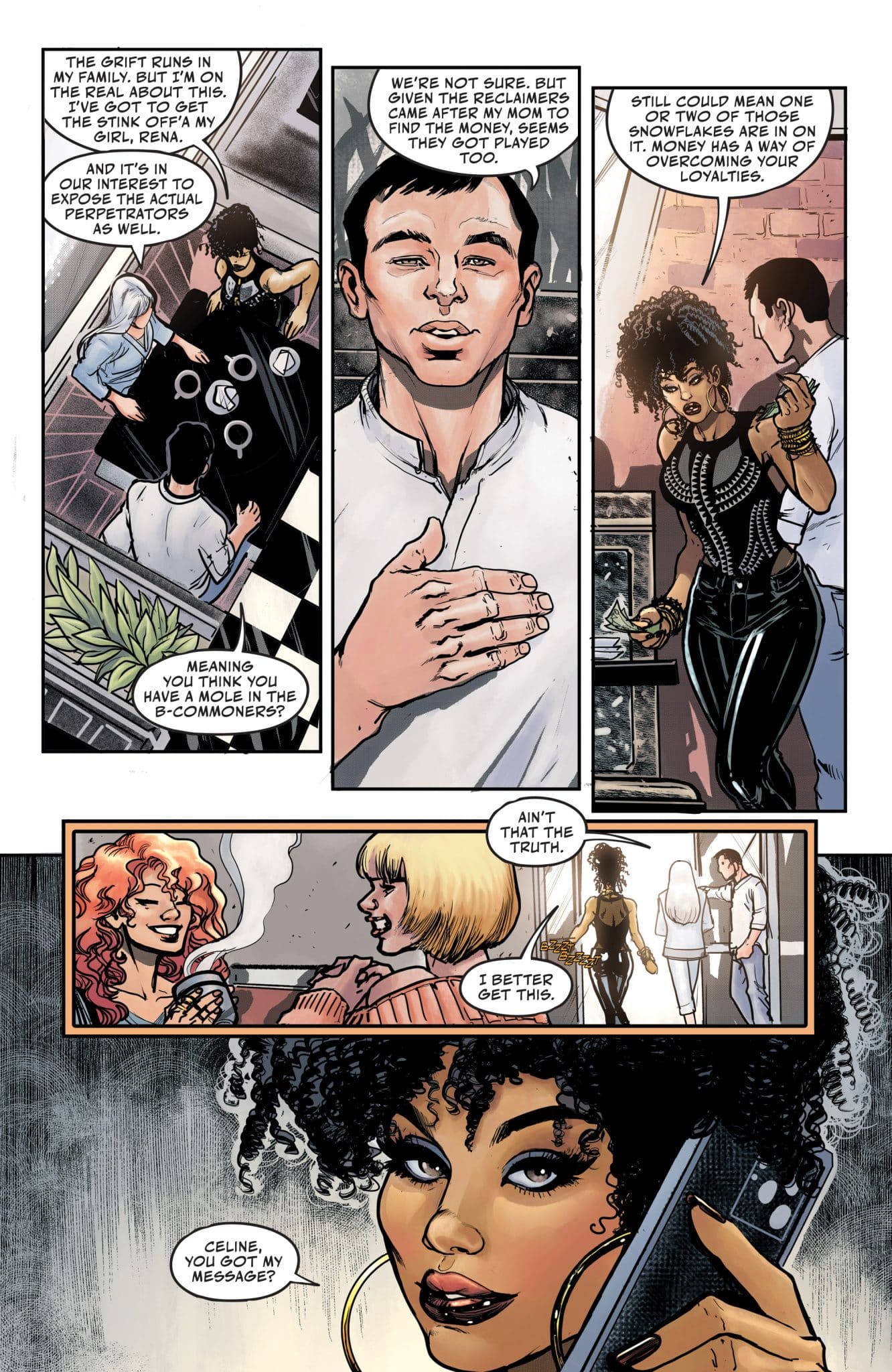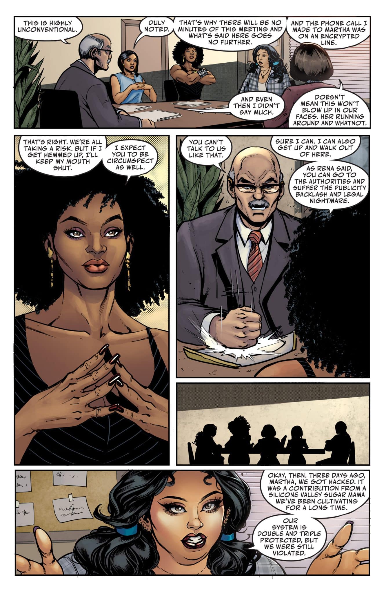 Within these pages, crooked Mayor Chuck Davis (Ice-T), his deadly female assassin Rhonda Knuckles (Coco), and right-hand-man Maniac Max (Treach) navigate the savage law of the street. With his hands busy in everything from money laundering to hired hits, Davis tries to stay one step ahead of the competition in the Round Table Gang—Benny Tang (Ben Baller), Azul Michoacan (Emilio Rivera), and Vinny “Pipes” Roselli (Jeffrey Peterson)—who have controlled the black market undercurrent of Tehk City for years. But information comes at a price, especially when purchased from Pretty Black (Snoop Dogg), whose black market network feeds him intelligence from the furthest reaches of Tehk City. Davis and his crew will soon learn that grabbing power from the top dog can take you sky high or drag you to the grave.
