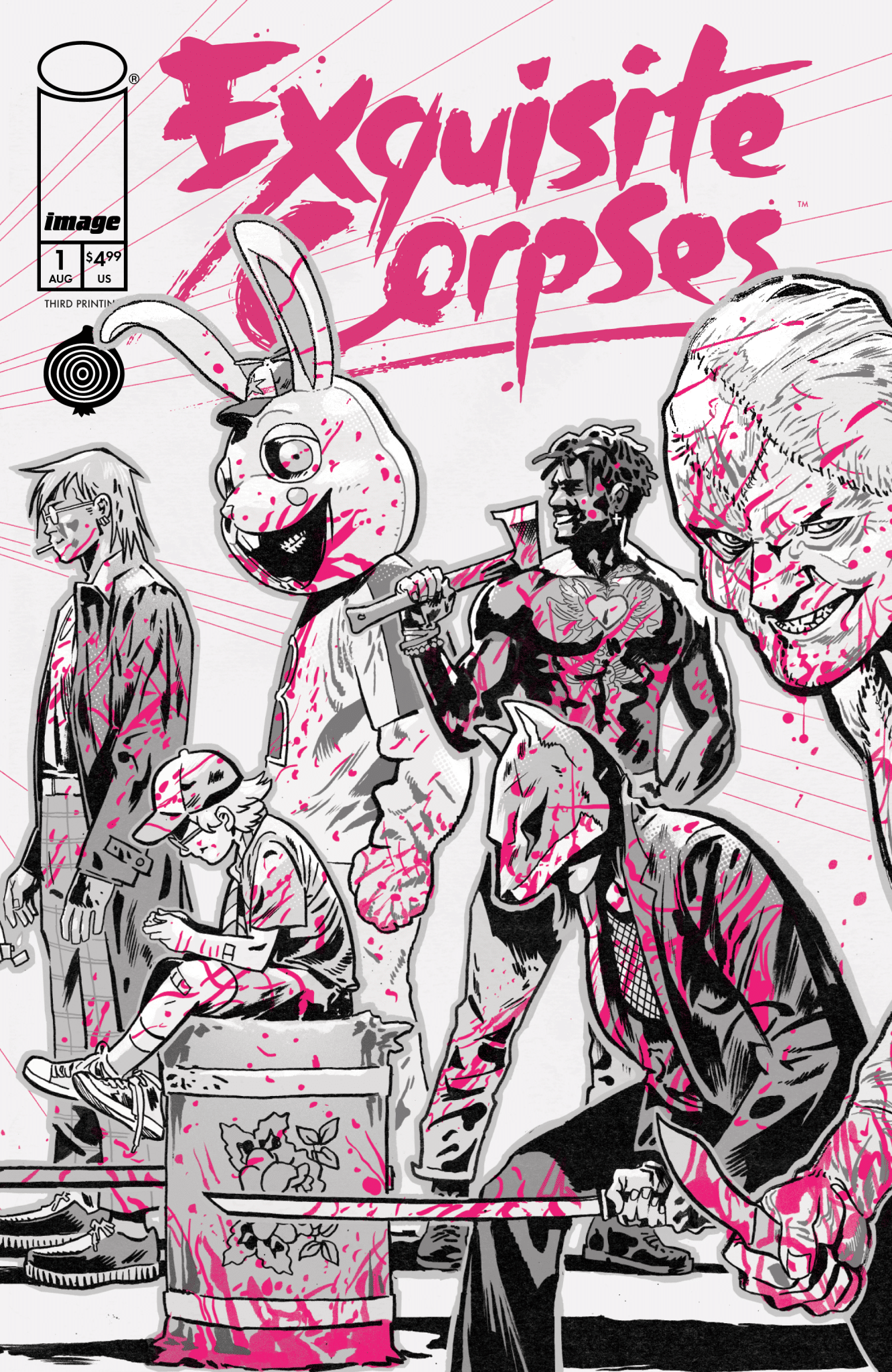 Tiny Onion is celebrating the release of the upcomingExquisite Corpses #6 by unwrapping the stealth Cover D by lauded horror creator Patrick Horvath, featuring bunny mascot killer Rascal Randy sitting upon a throne of bodies at a birthday party. The brand new artwork will grace the October issue from the critically acclaimed, bestselling horror series published by Image Comics, which is hitting shelves just in time for Halloween. Exquisite Corpses masterminds, writer James Tynion IV and artist Michael Walsh, will be joined by contributing Corpse Crew creators Tyler Boss and Gavin Fullerton on writing and art duties, respectively.
