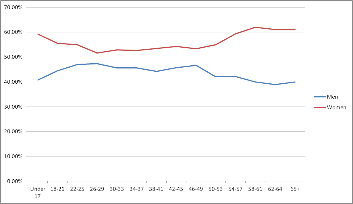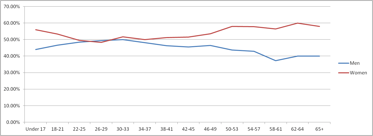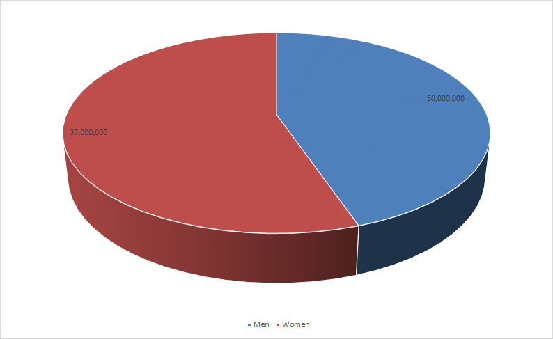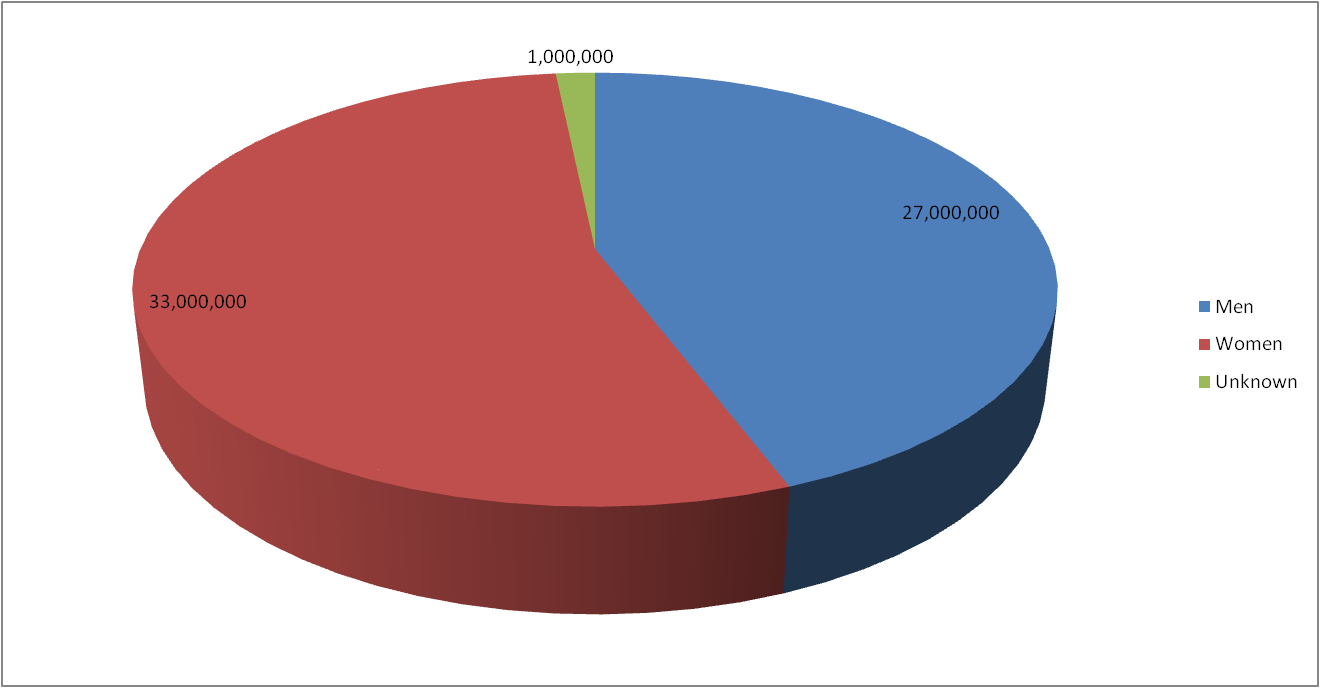 In the last report, women accounted for 50.59% while men accounted for 48.24%. This month things shifted. Men now account for 47.62% and women 51.19%. The 1 million individuals whose gender is unknown is still present this month..