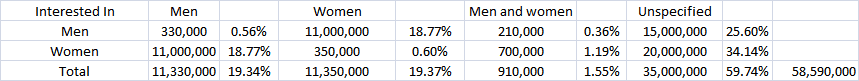 Also, with this being online/technology, due to laws and restrictions, those under the age of 13 are likely underrepresented. Europe also has some other data restrictions that will be discussed below.