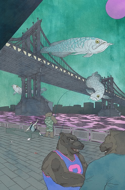 Collected in this special anniversary deluxe hardcover edition are The Shaolin Cowboy: Start Trek and the long out-of-print fan-favorite Bourbon Thret comics from Comics and Stories, originally published in France by Moebius’ publishing house Ædena, and featuring coloring by Lovern Kindzierski, Alex Wald, Pete Doherty, Nicole Thenan, Yves and Jean-Jaques Chagnaud, Isabelle Beaumenay, François Boucq, Gérard Bouysse, Gaetano Liberatore, and Mœbius with lettering by Doherty. What lies ahead are more than two hundred pages where every single panel is a work of art. You can look at these pages for years and always find something new in the details.