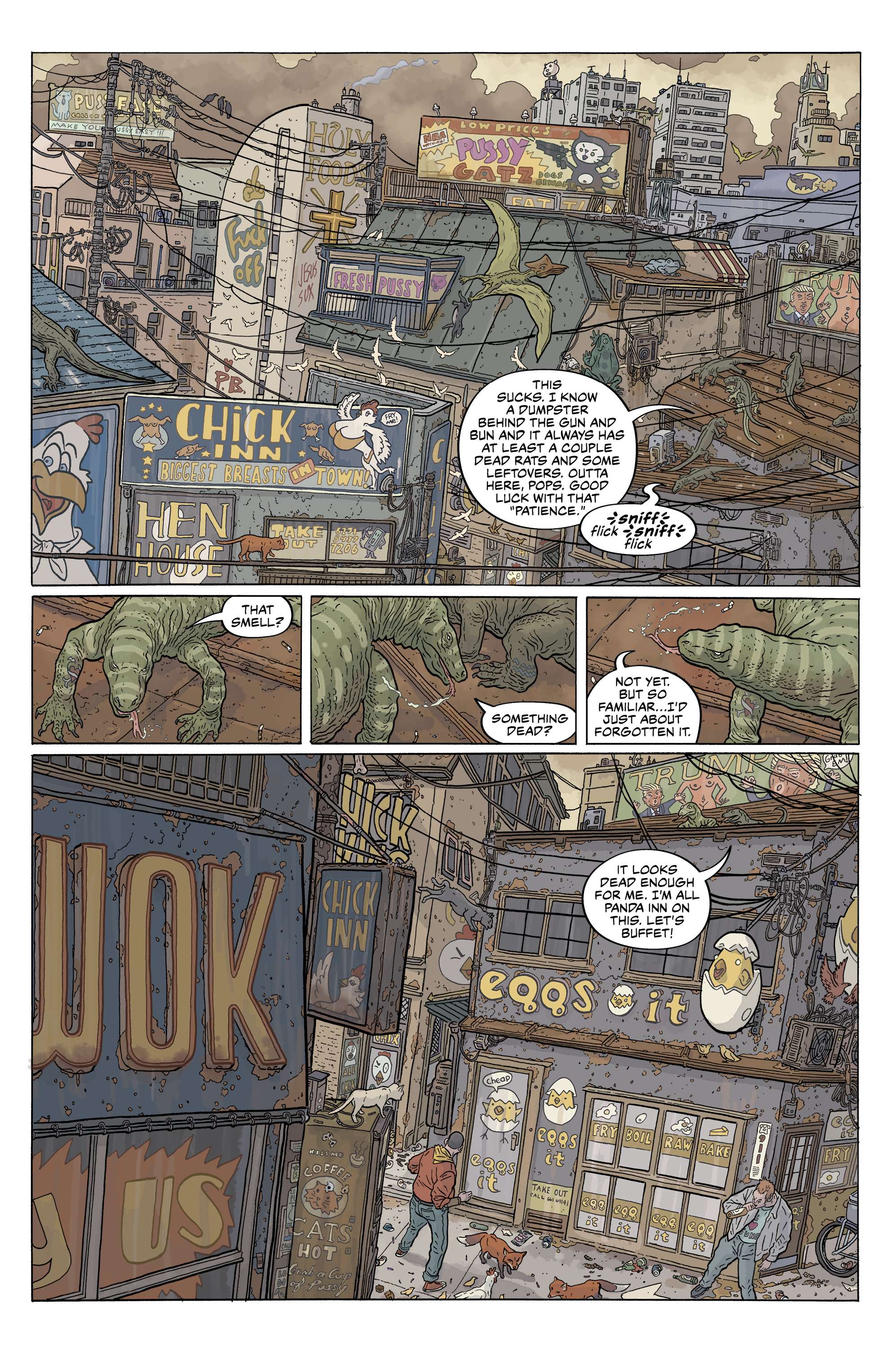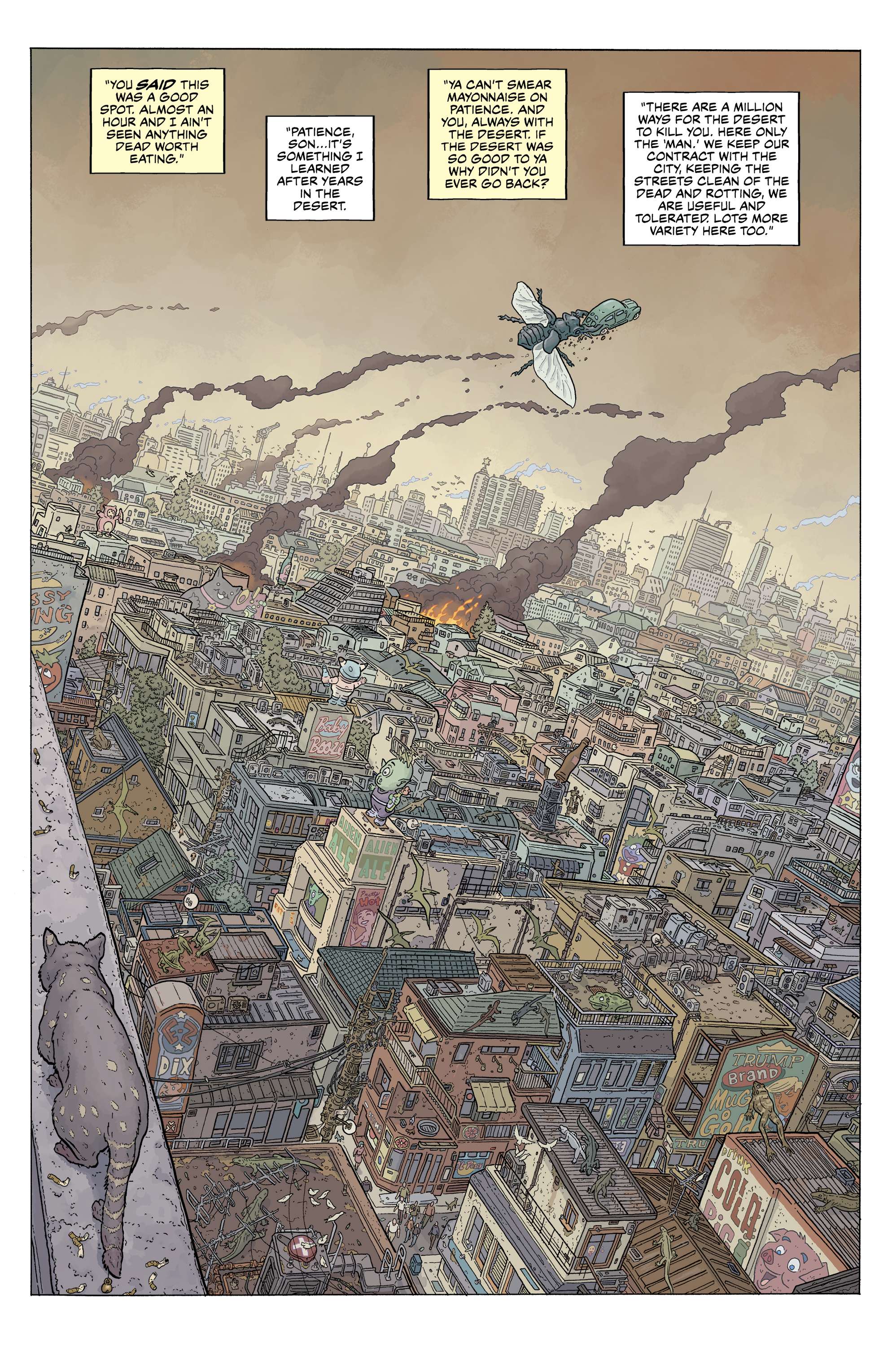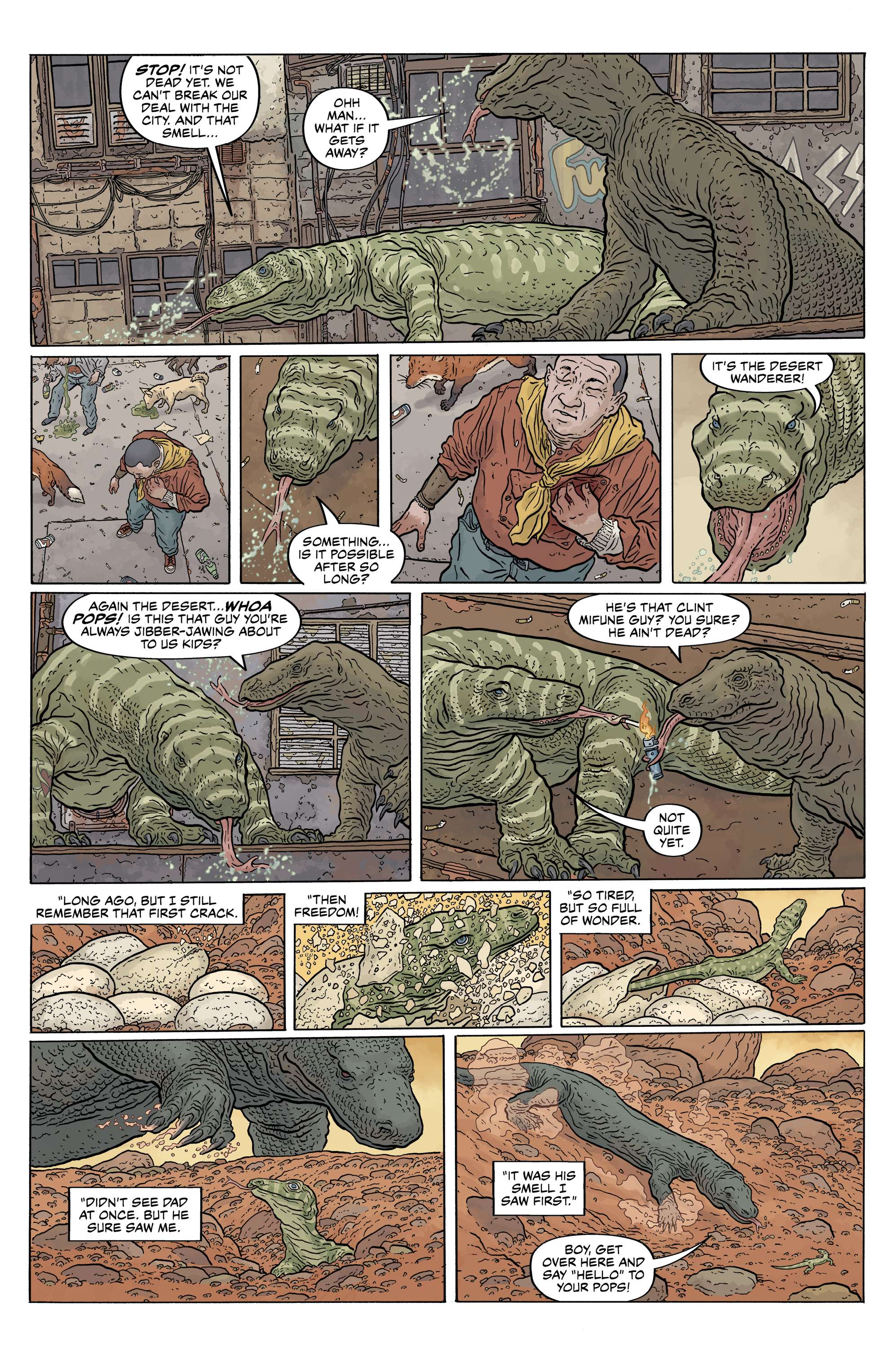 Collected in this special anniversary deluxe hardcover edition are The Shaolin Cowboy: Start Trek and the long out-of-print fan-favorite Bourbon Thret comics from Comics and Stories, originally published in France by Moebius’ publishing house Ædena, and featuring coloring by Lovern Kindzierski, Alex Wald, Pete Doherty, Nicole Thenan, Yves and Jean-Jaques Chagnaud, Isabelle Beaumenay, François Boucq, Gérard Bouysse, Gaetano Liberatore, and Mœbius with lettering by Doherty. What lies ahead are more than two hundred pages where every single panel is a work of art. You can look at these pages for years and always find something new in the details.