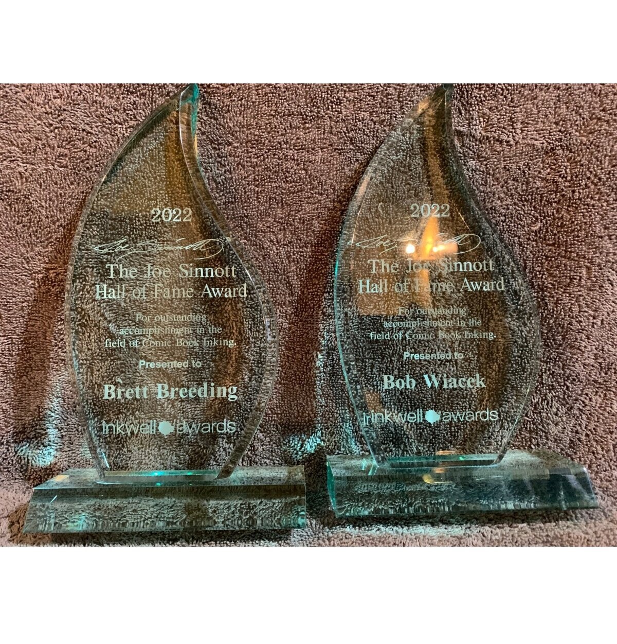 This year there are two new recipients of the Joe Sinnott Hall of Fame Award: Brett Breeding and Bob Wiacek.