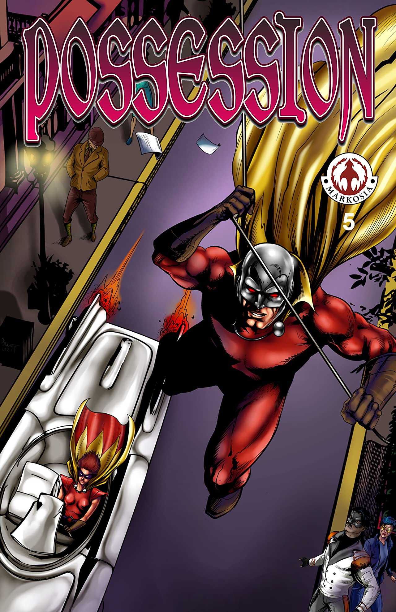 “All this has happened before, and all this will happen again.” This issue turns away from the usual Possession cast for a tale of times past, in which the 1940’s heroes Shaman & Flame share a turbulent romance and confront the two-faced Head of Janus in a tragedy on the border of reality!