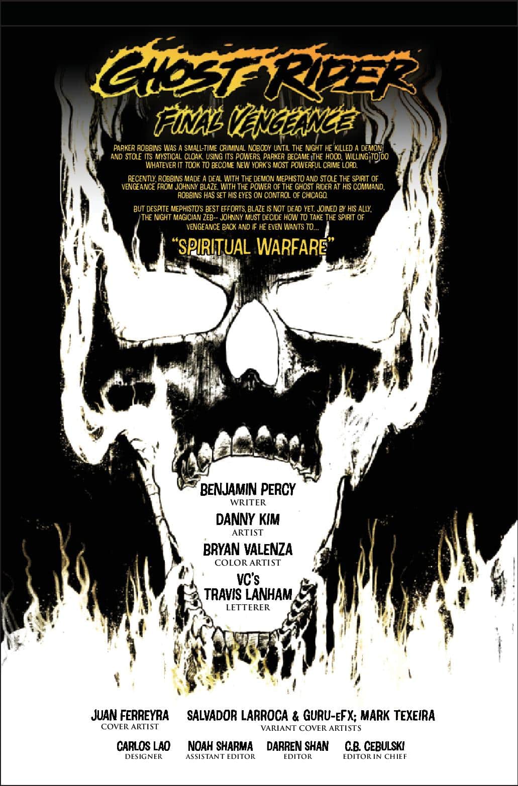 Motorcycle stunt performer Johnny Blaze made a demonic pact that imbued him with the power of hellfire and the ability to inflict pain on those that he deemed evil. Now he seeks vengeance as the flaming-skulled Ghost Rider.