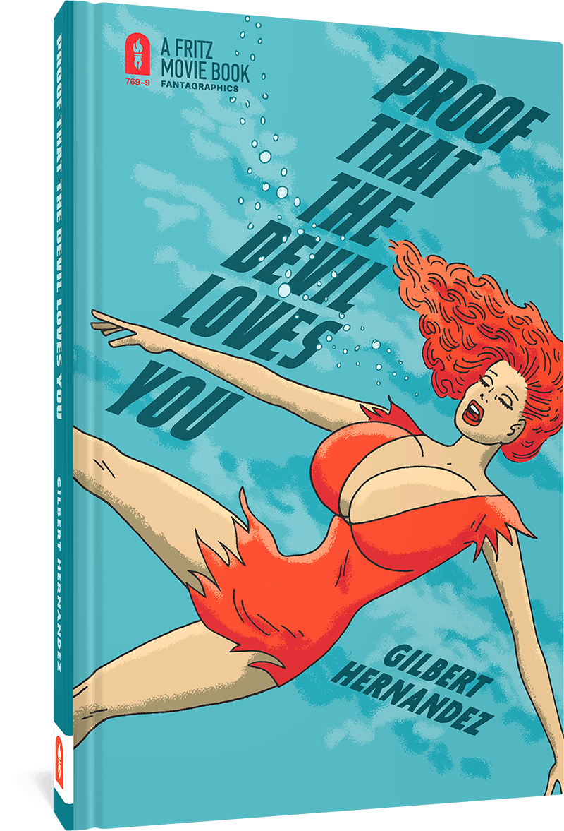 Proof That the Devil Loves You is the latest in a series of graphic novels featuring Gilbert Hernandez’s character Fritz, a B-movie actress (and half-sister to his iconic Love and Rockets character, Luba) whose hourglass figure has earned her a cult following. This book presents three Fritz B-movies: one all-new, two revised and expanded from their initial comic book run. The titular story is a fable set in a world very reminiscent of Palomar. Then, Fritz plays an “astronette” on an existential mission through space.