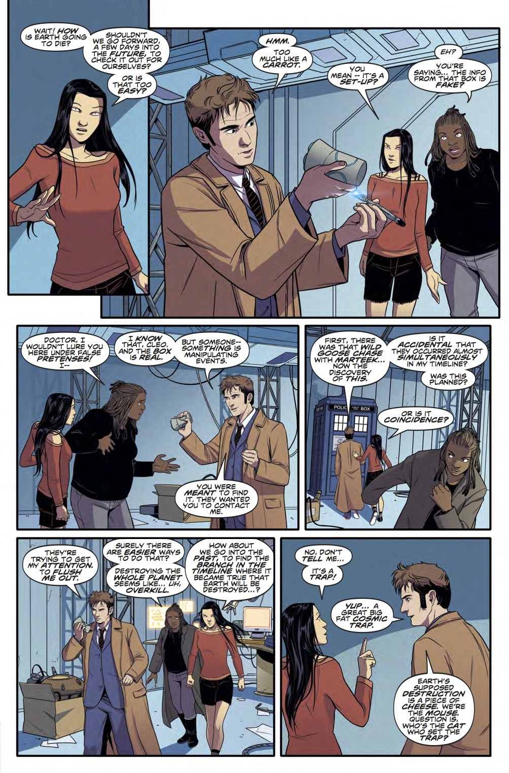 Meanwhile, the Doctor and Cindy were hot on the trail of Marteek, or rather, an imposter pretending to be Marteek, when they received a terrifying message from Cleo… concerning the destruction of Earth!