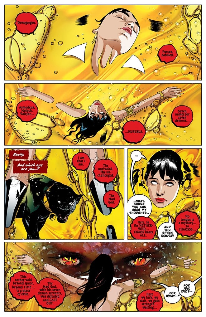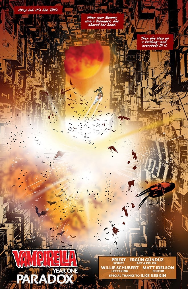 This final volume of Christopher Priest’s core run on the record-breaking 50th anniversary celebration of Vampirella includes a trio of pivotal and exciting tales of the Daughter of Drakulon. The star of the show here is ”The Long Night,” concluding his long arc, as Vampirella returns from her interstellar journey pursued by the enigmatic vampire-hunting Shane. Events are set in motion and past secrets revealed that will lead to the blockbuster final issue featuring…Vampi’s wedding to Dracula!