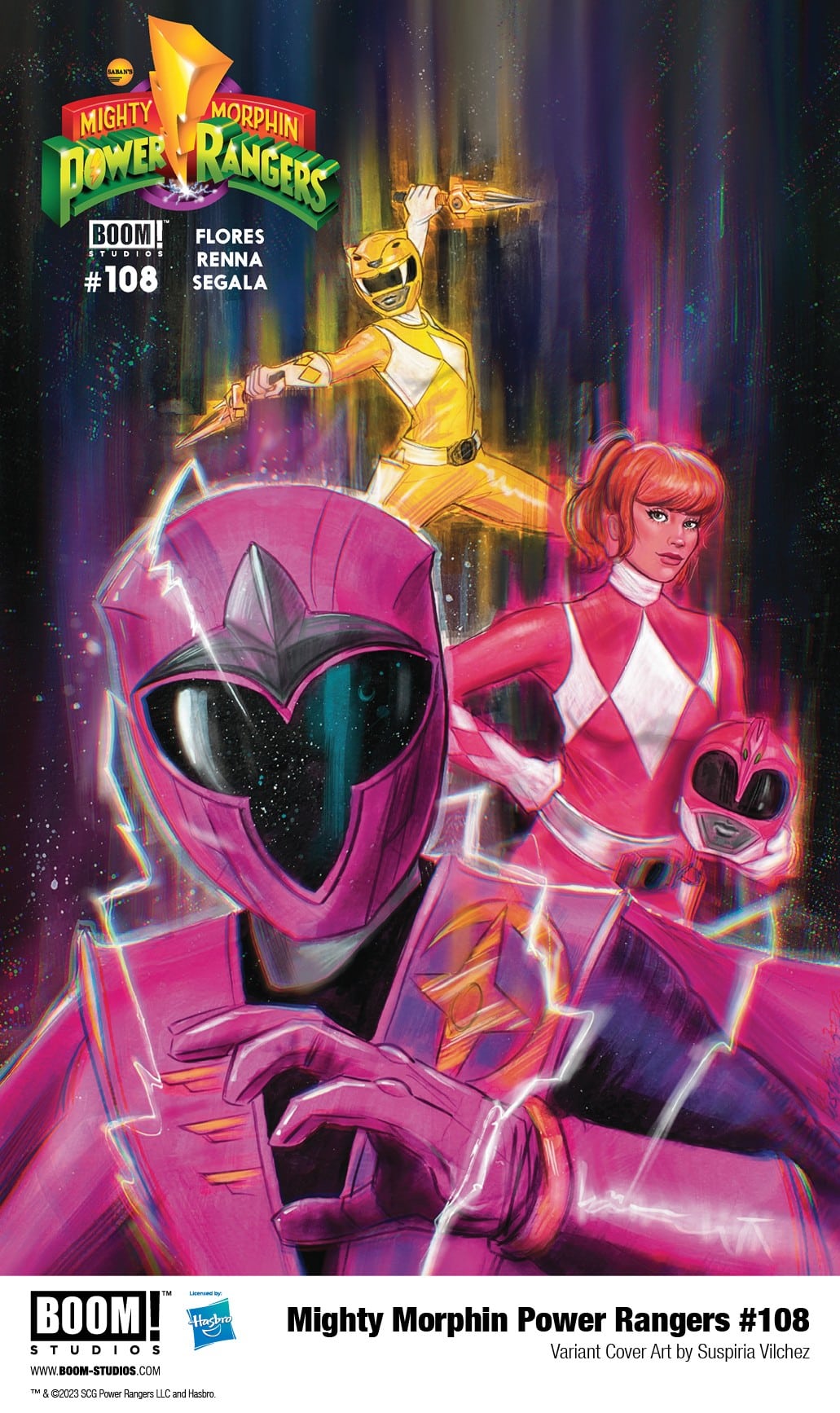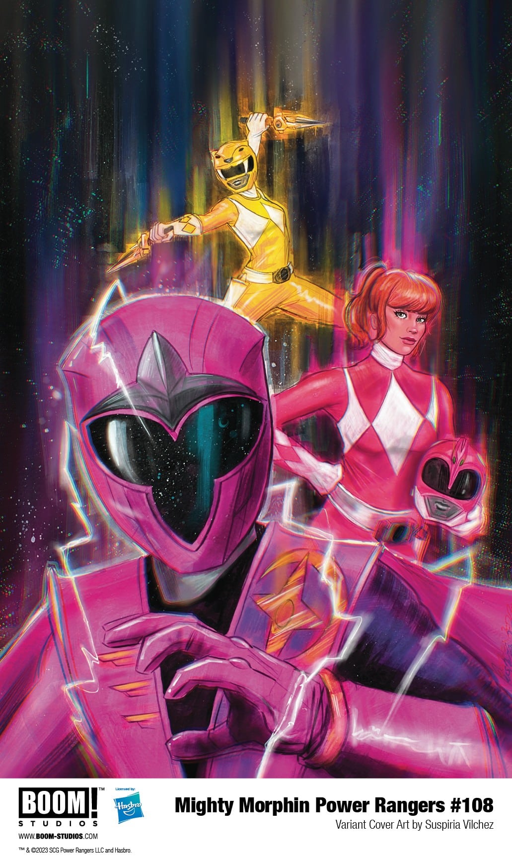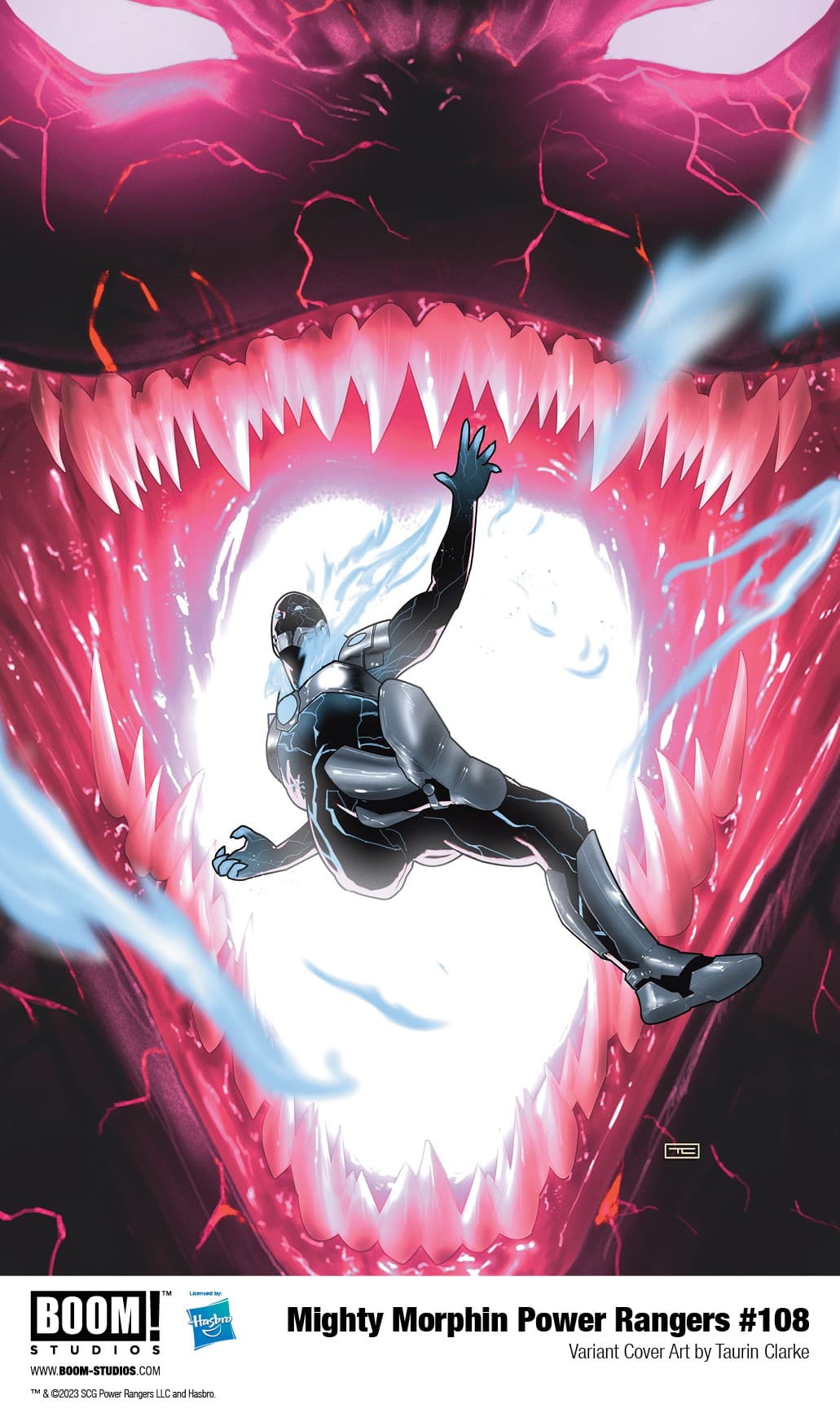 Mighty Morphin Power Rangers #108 features main cover art by star artist Taurin Clarke and variant covers by acclaimed illustrators Bon Bernardo and Suspiria Vilchez.
