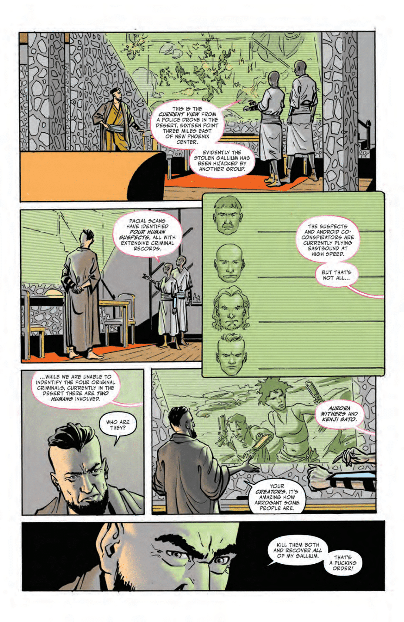 Kenji and Aurora’s venture into the crime world has gone almost too well… and now their android accomplices want a larger slice of the share! When Kenji uncovers that his role in the gang has been made obsolete he realizes just how badly his plan has gone awry. Can he stop his former proteges before the crime spree spreads across the globe?