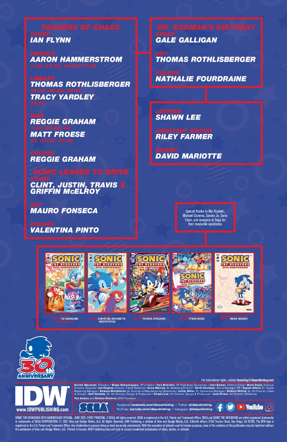 The Sonic the Hedgehog 30th Anniversary Special will be available with multiple cover variants for retailers and fans to enjoy, including Cover A by Sonic Team, Cover B by Christina-Antoinette Neofotistou, and two retailer incentive editions featuring art by Patrick Spaziante and Tyson Hesse, respectively.