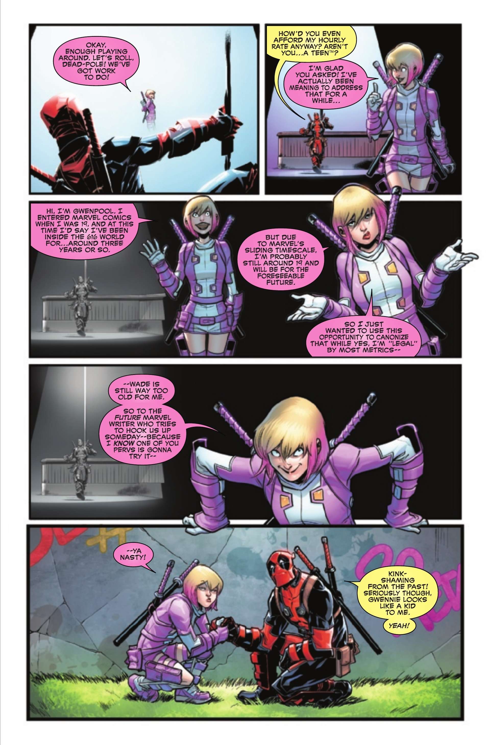 Williams lays things out for readers in a fun meta opening. The explanation elevates Gwenpool from “female Deadpool from our world” to something more. There’s a dive into the layered explanation of the character and what writers can do with her. Williams then does it, using the story and character to explore fandom and superheroes.