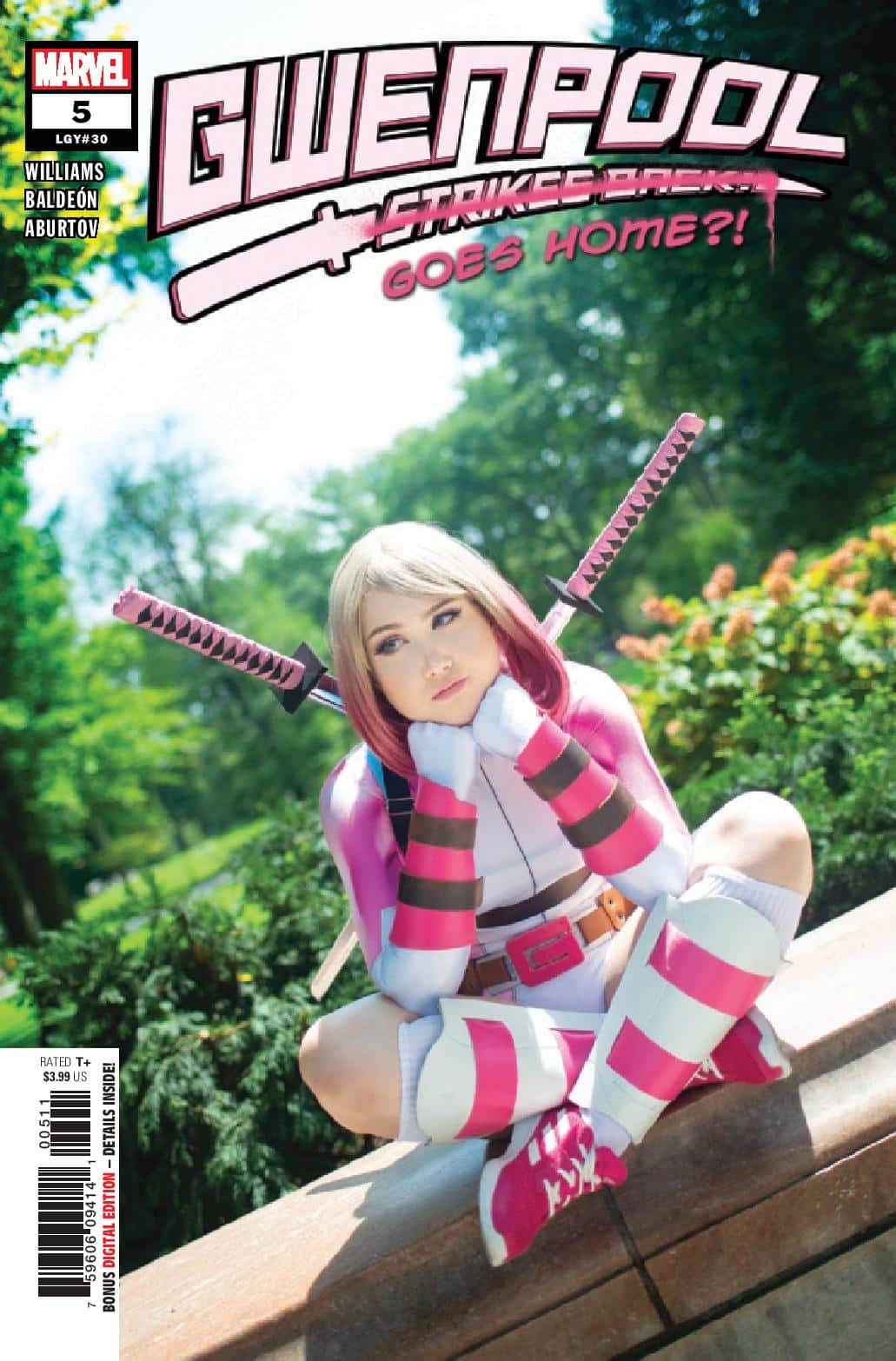 What really stands out is the art. David Baldeón‘s art with Jesus Aburtov‘s color is amazing. Add in Joe Caramagna‘s lettering and the comic comes together and exceeds my expectations. There’s a point the art shifts as Williams goes overly meta and breaks the pages. Gwenpool launches between the pages and within the comic itself. At that point the art becomes truly amazing with twisting visuals that will make your jaw drop.