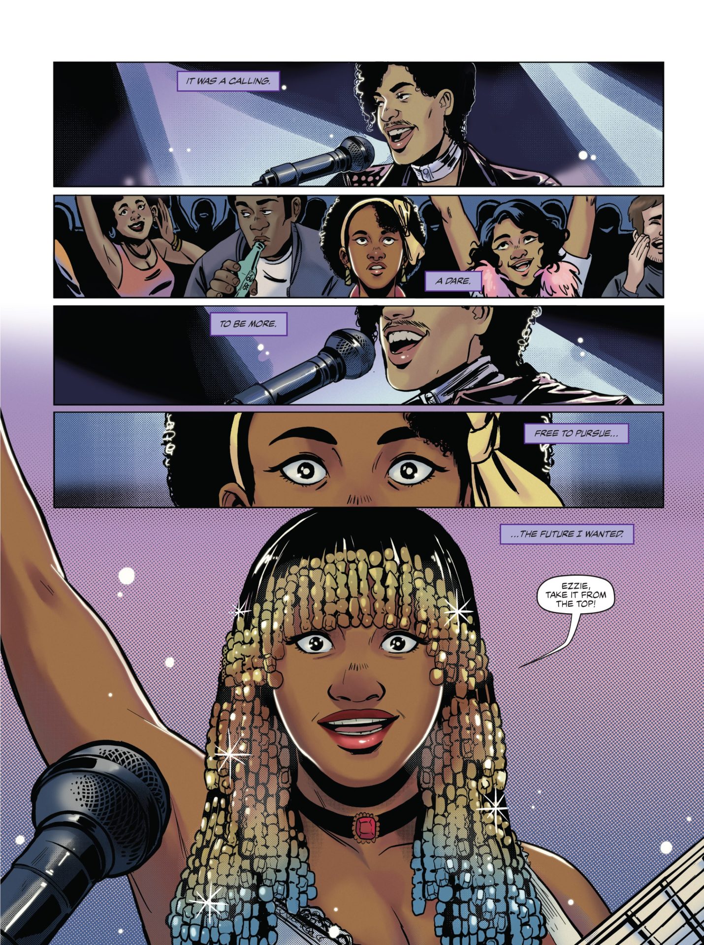 Theresa and Starchild pose a lot of questions as to what’s expected of them being that Prince’s influence can either make of break the band’s identity. Of course, this is where Illidge and Tabu’s script takes the opportunity to focus on the value of going through the process, of putting in the work.