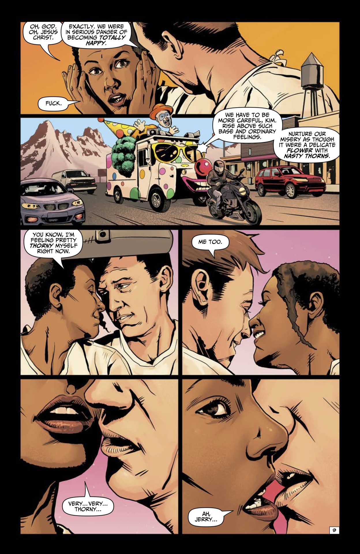 With a genuinely rag tag group of characters, a touch of intellectual wit and real emotional honesty from Peter Milligan’s script, and some downright unsettling art from Michael Montenat, Happy Hour #1 is the perfect comic for folks who want to feel their feelings instead of embrace Stoic philosophy like the rest of the fake happy influencer crowd.