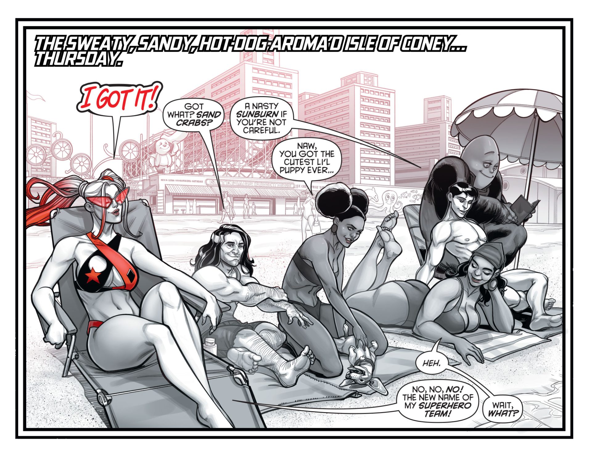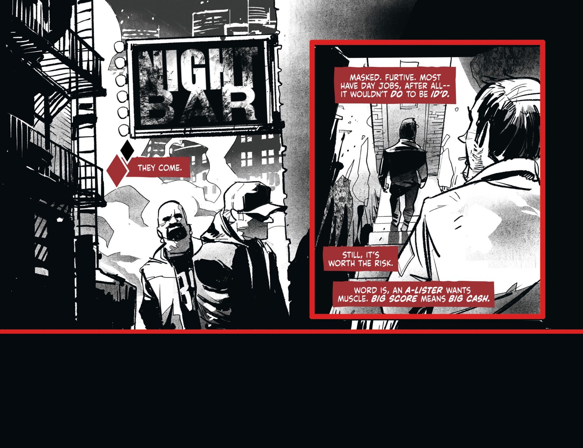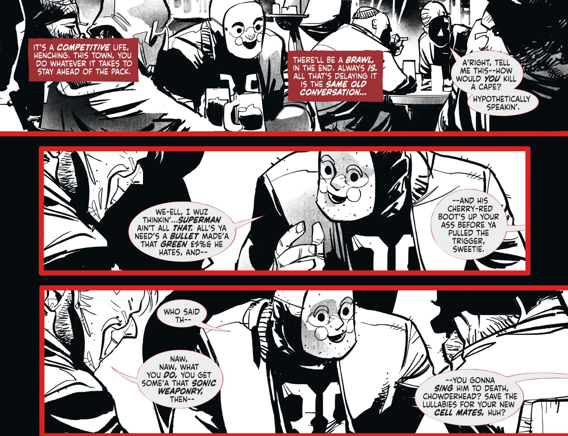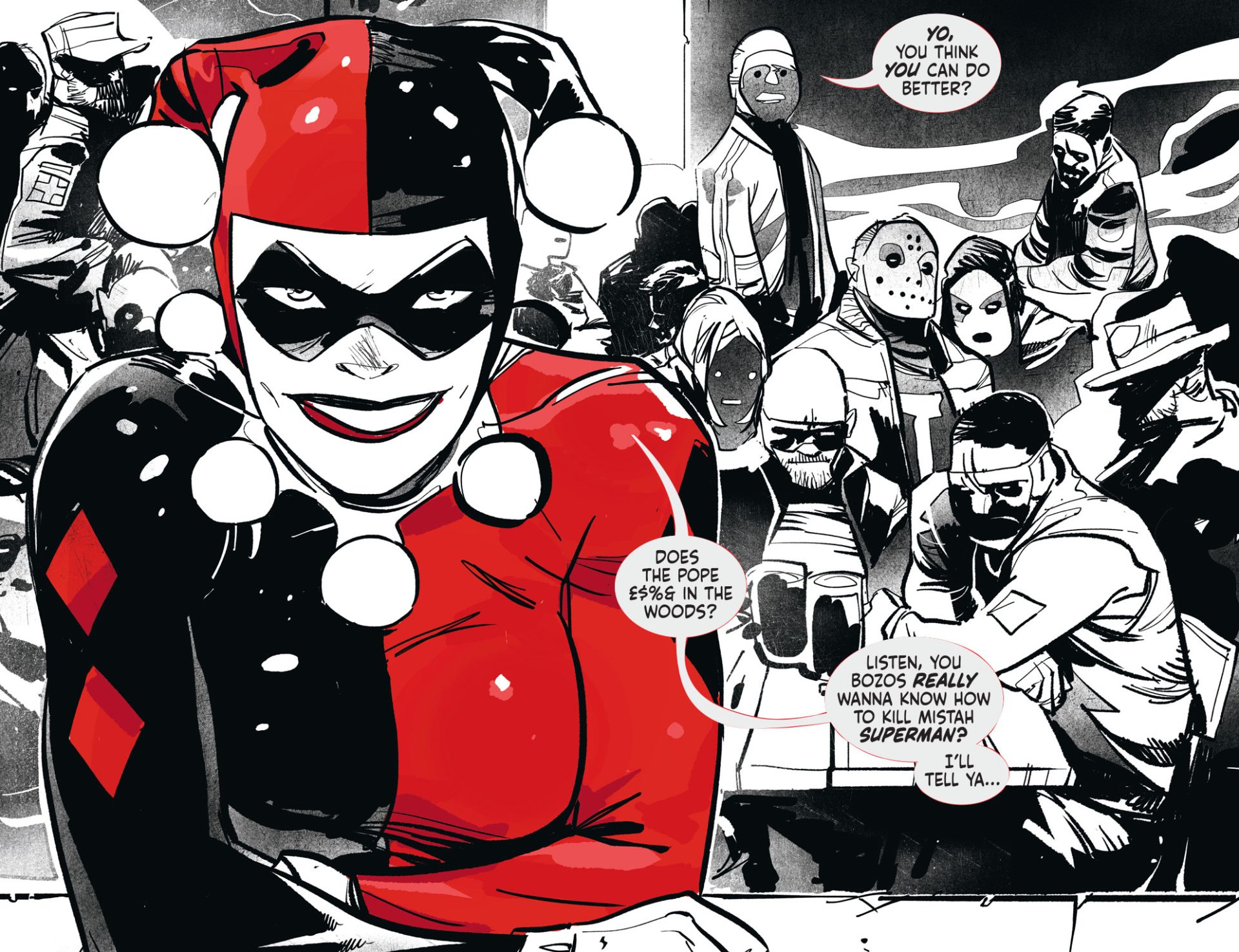 It’s simple: kill the Batman. And the Flash. And Wonder Woman. And Superman. At least, hypothetically. And hypotheticals are all Harley Quinn’s got as she regales a bar full of Gotham’s scummiest scumbags on how she would take down the Justice League, but her solutions are anything but simple…