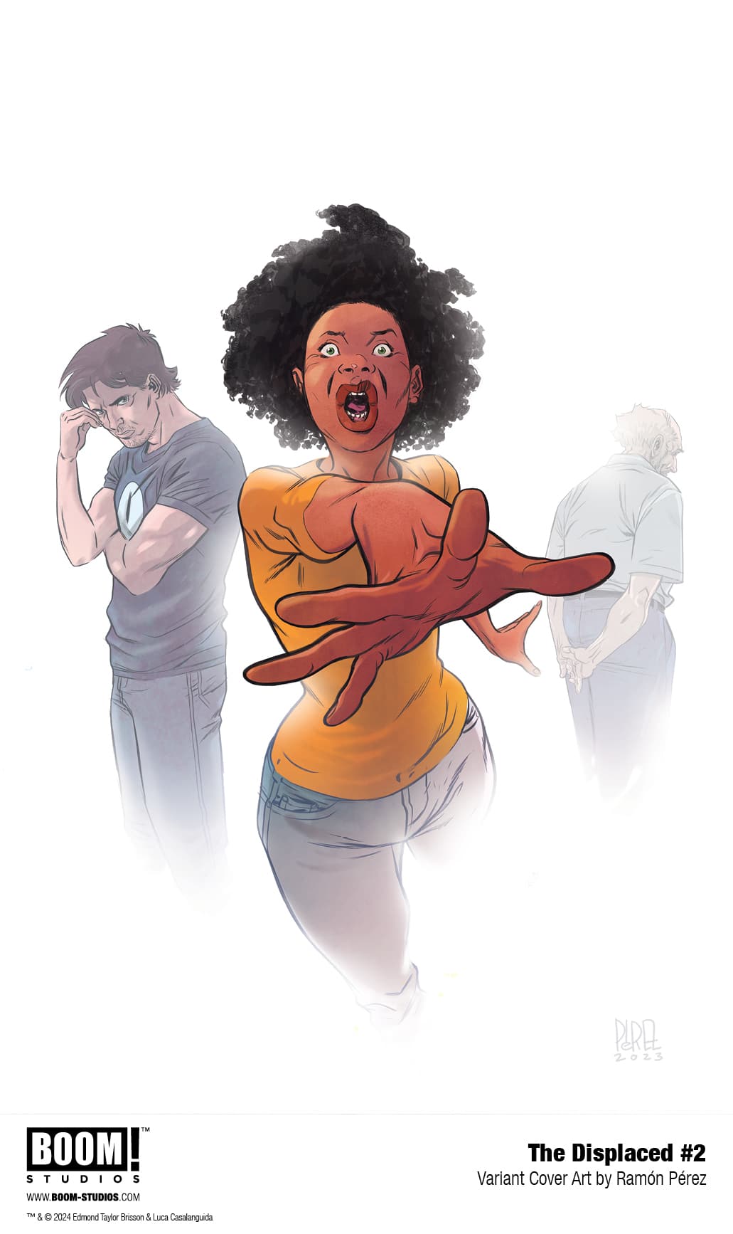 The Displaced #2features main cover art by series artist Luca Casalanguida and colorist Dee Cunniffe and variant covers by Declan Shalvey and Ramón Pérez.