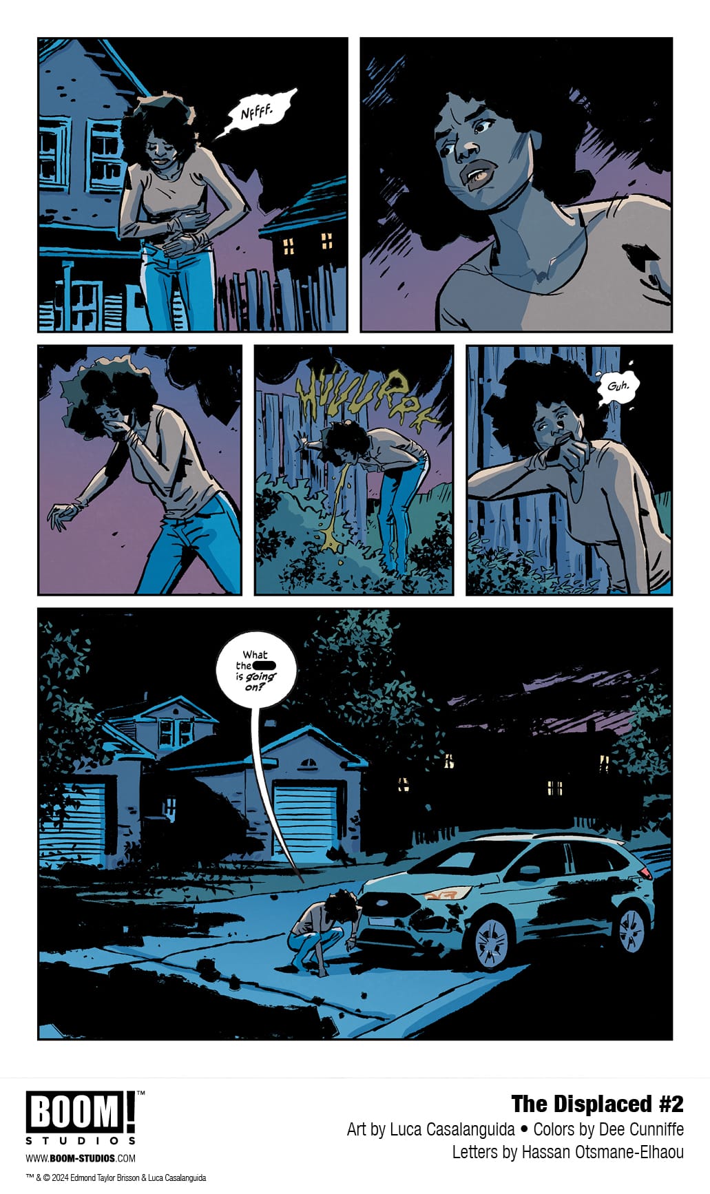BOOM! Studios has revealed a first look at The Displaced #2, the next issue of the series by writer Ed Brisson, art by Luca Casalanguida, colorist Dee Cunniffe, and letterer Hassan Otsmane-Elhaou. Discover a new psychological and philosophical mystery in The Displaced, continuing March 20, 2024.