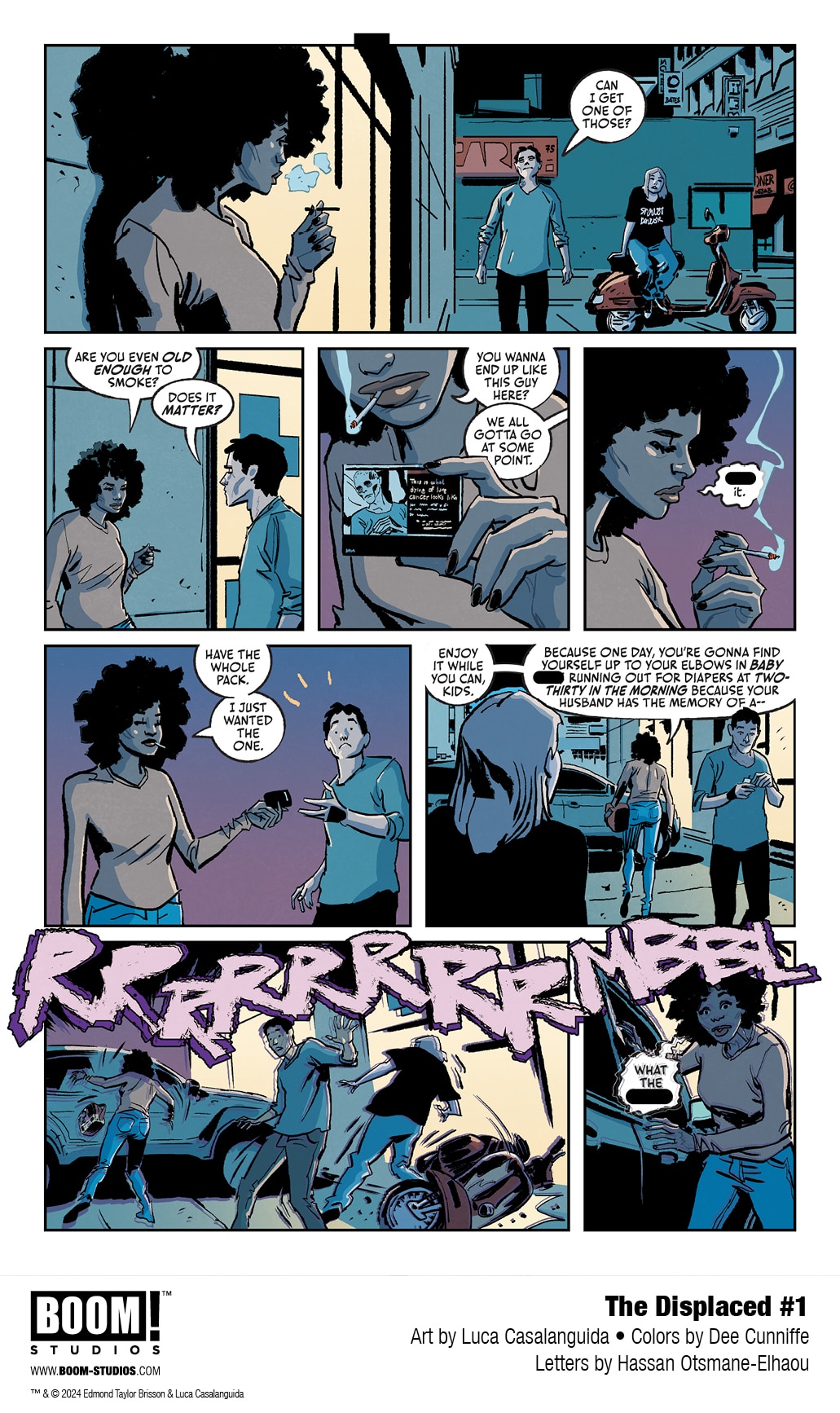 The art by Luca Casalanguida is solid. With color by Dee Cunniffe and lettering by Hassan Otsmane-Elhaou, the comic has a rather mundane, every day, sort of vibe about it. Even the event that impacts the city never feels over the top or distracting. It happens off page, with the focus on the characters and their reaction. Casalanguida and the team also capture a rather dazed aspect about it all. There’s not reactions that are over the top and distract. Like the characters themselves, what they experience is something the readers can relate to easier. There’s a weird calm shock about the visuals that just works.