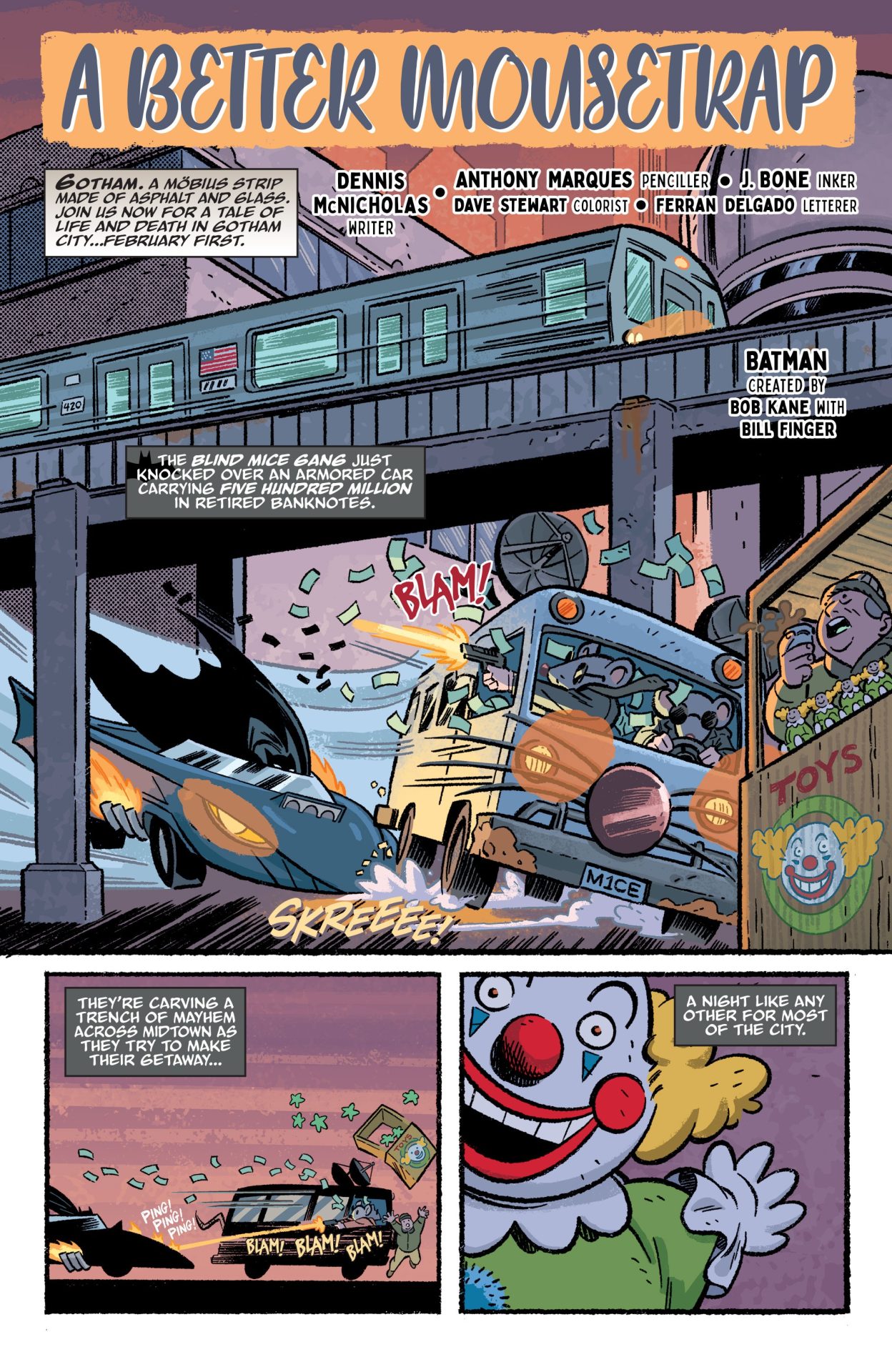 Ah, you hear that beautiful racket? That’s the music of Gotham City—the largest city in the world, the big gargoyle, the treasure of the night—anyone who calls it a crime-infested hellhole is dead wrong. No way hell has such great pierogies. So join us here (hear?) as we bring you the stories behind the stories behind the hit HBO Max scripted original podcast with this sensational prequel one-shot, written by the very creators and talent who lent their voices to the show.