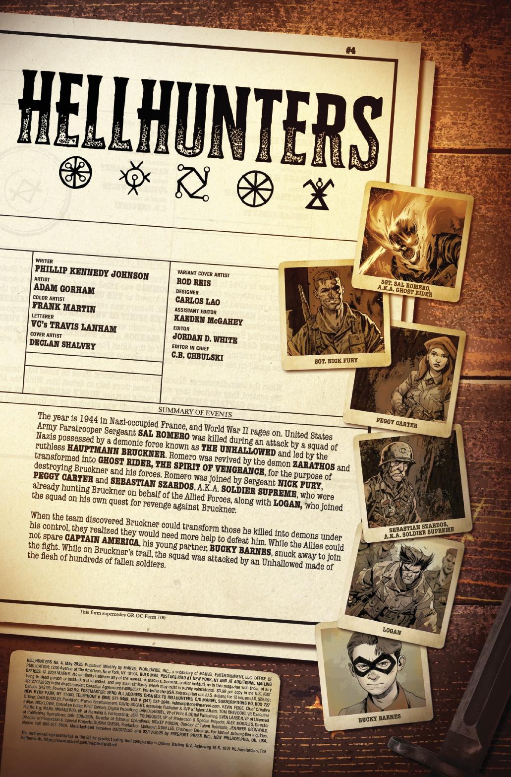 1944: As U.S. Sergeant Sal Romero is parachuting into Nazi-occupied Europe, young Nazi officer Felix Bruckner becomes the host for an unspeakable evil. In the aftermath of their violent meeting, Romero is reborn as Ghost Rider ’44, who sets out not only to take revenge on Bruckner and the Nazis, but to save mankind from annihilation! Hellhunters #1 takes us back to the kind of story where it was clear who the bad guys are and kicking Nazi ass was something you cheered on.